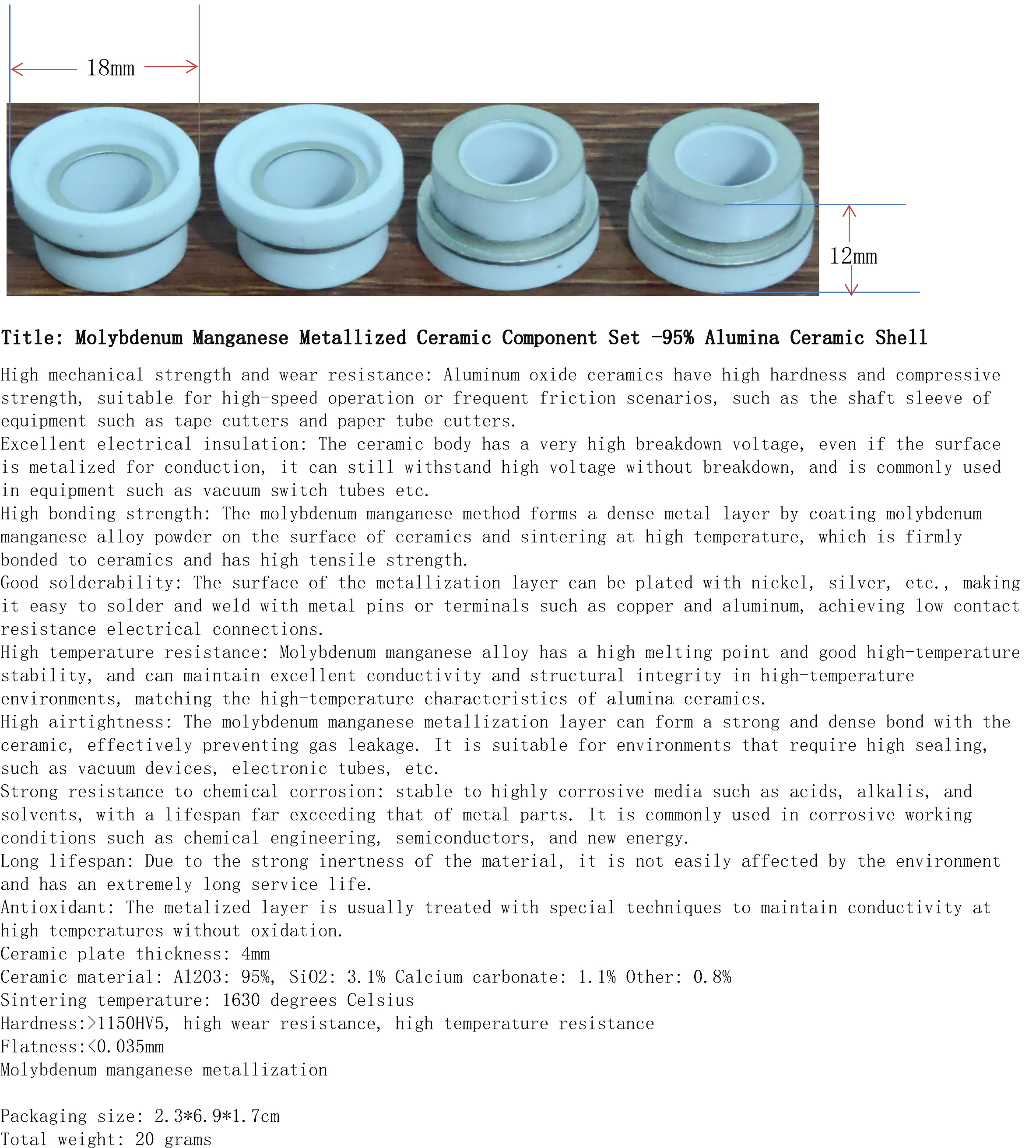 产品名称:钼锰金属化陶瓷2件套-95%氧化铝陶瓷外壳