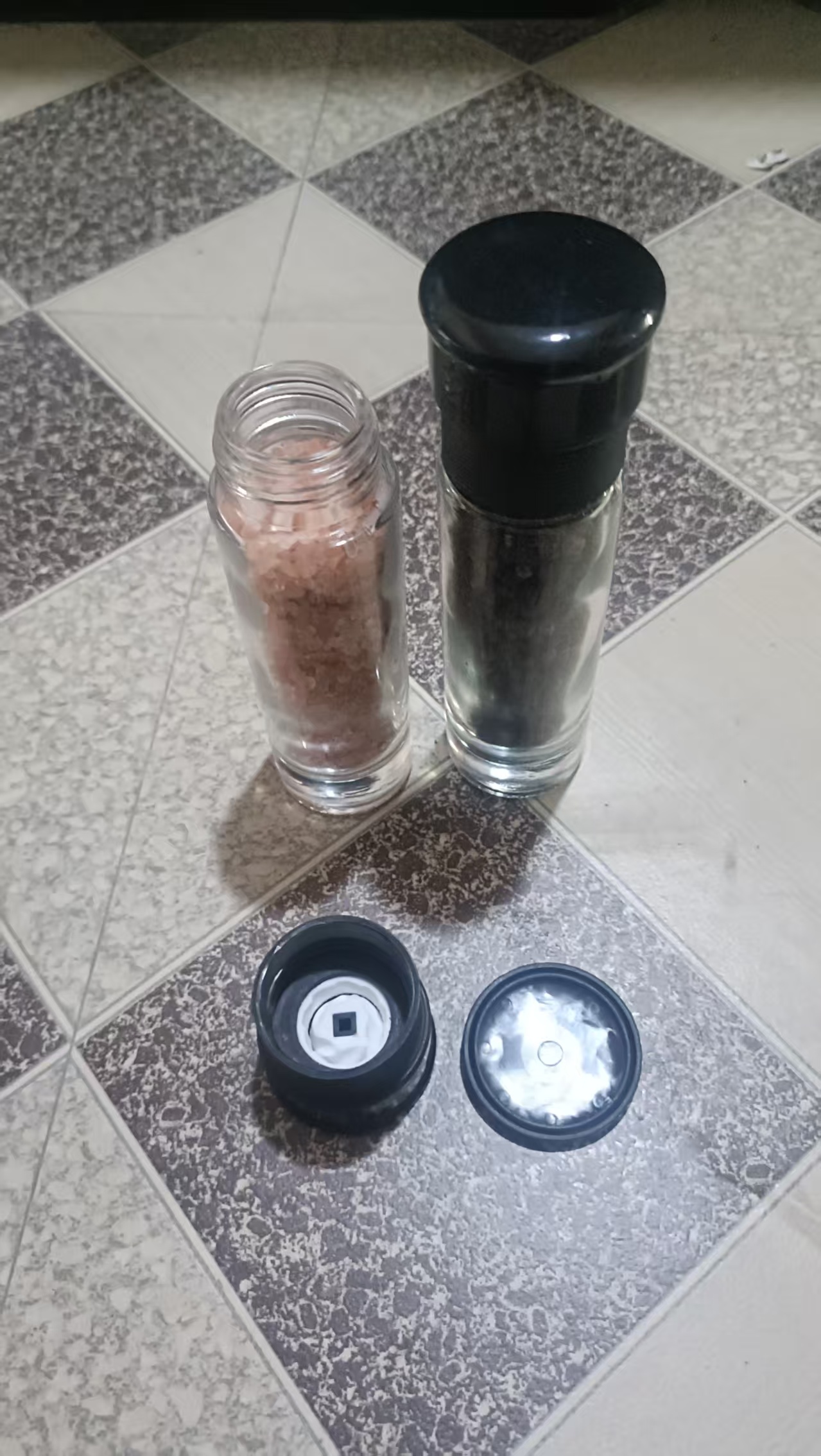 黑色的密封盖和螺纹瓶盖=新鲜香料:我们密封的黑色盖和螺纹瓶盖通过防潮使您的喜马拉雅海盐、胡椒粉和香料保持新鲜和持久盐和胡椒研磨器在摇瓶顶部有研磨机制,确保盐和胡椒只会出现在你的食物上,而不是遍布你的桌子或柜台。
