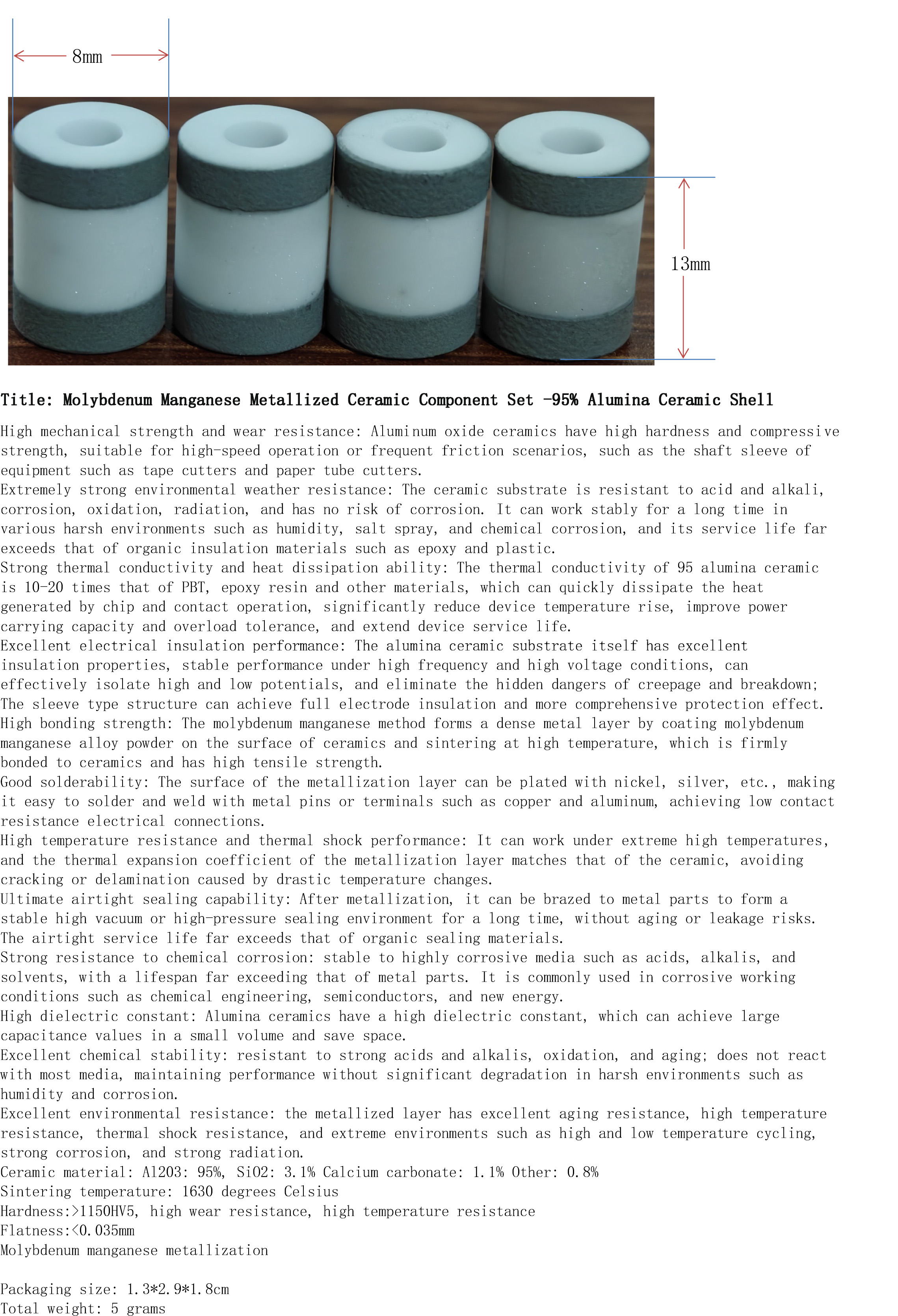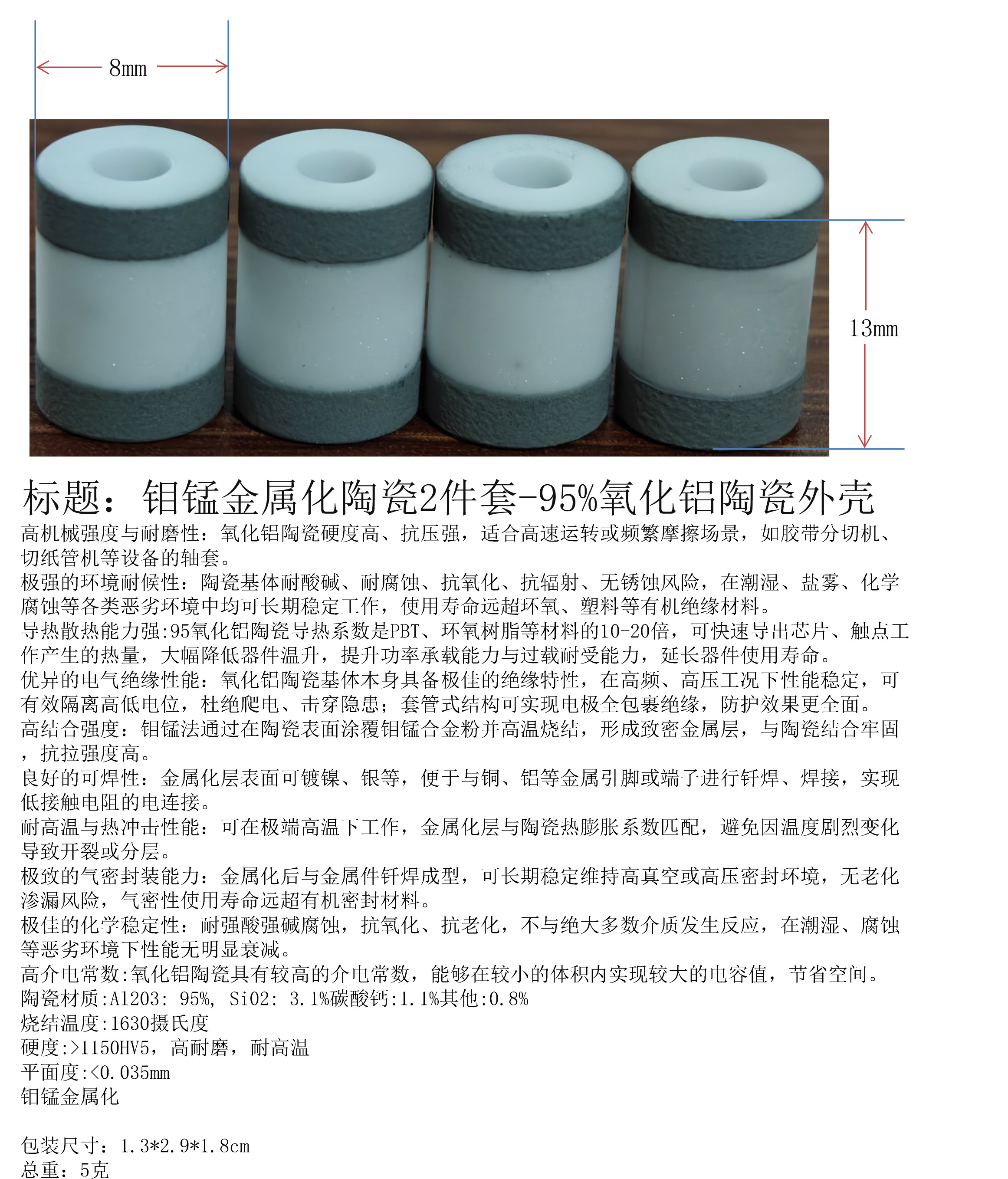 产品名称:钼锰金属化陶瓷2件套-95%氧化铝陶瓷外壳