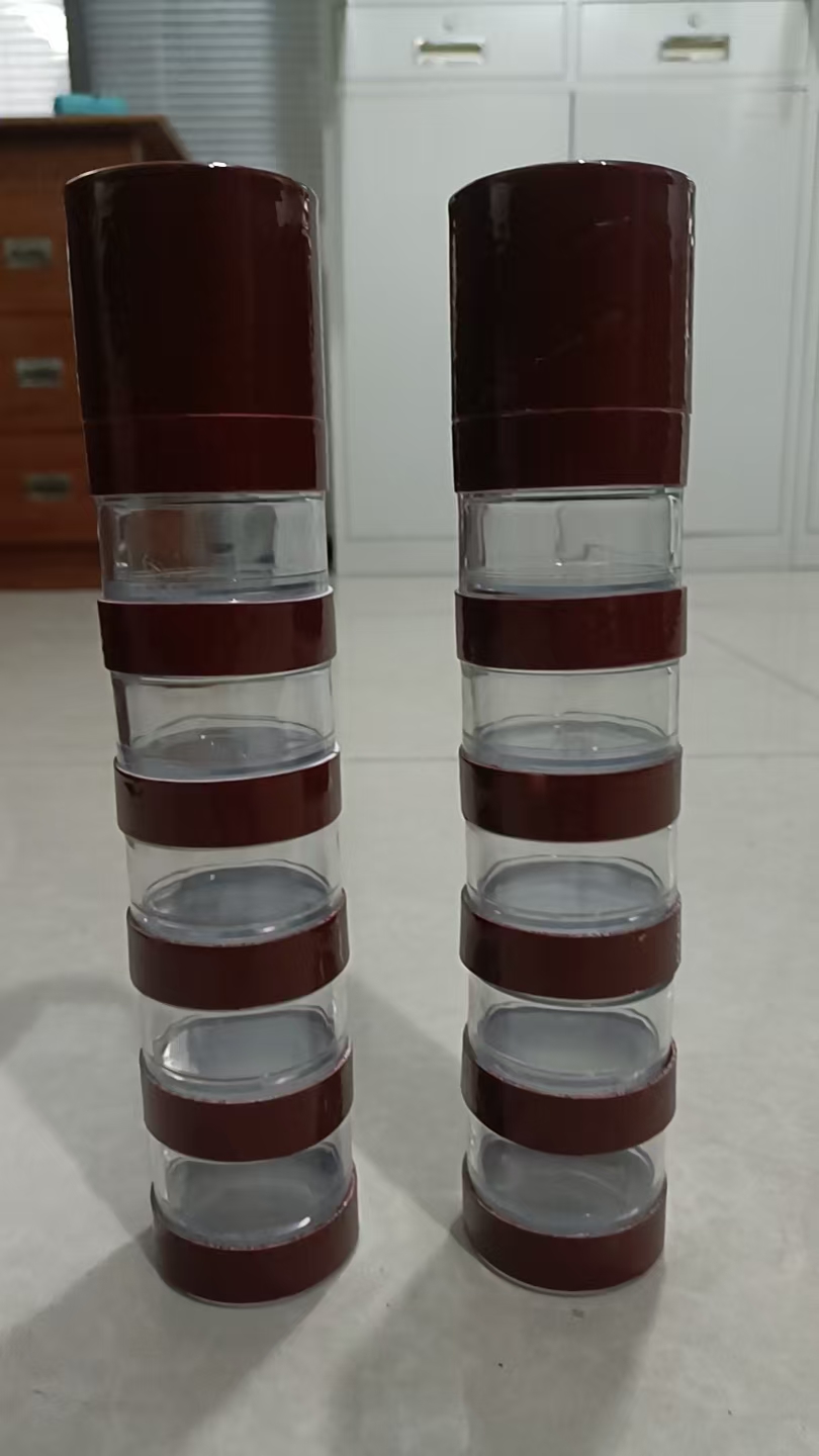 多个单一功能的研磨器,一共有五层,想用哪层的香料,只需要将对应层数的罐子扭出放置研磨器下方即可。