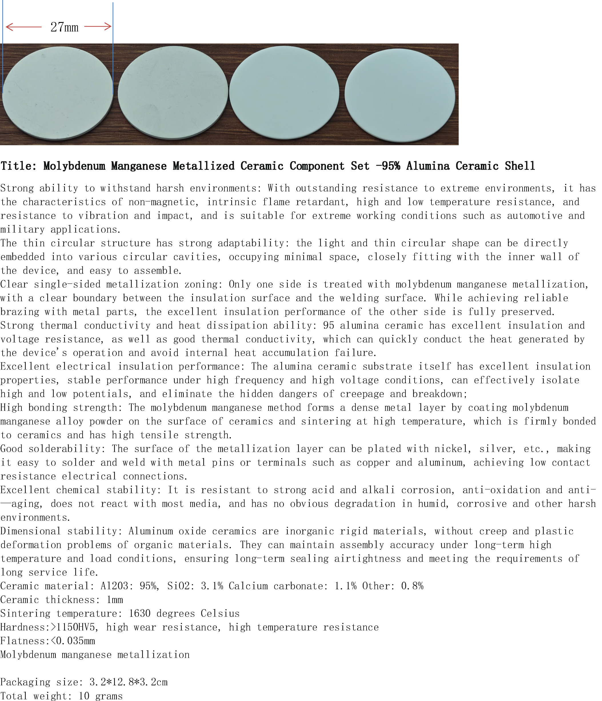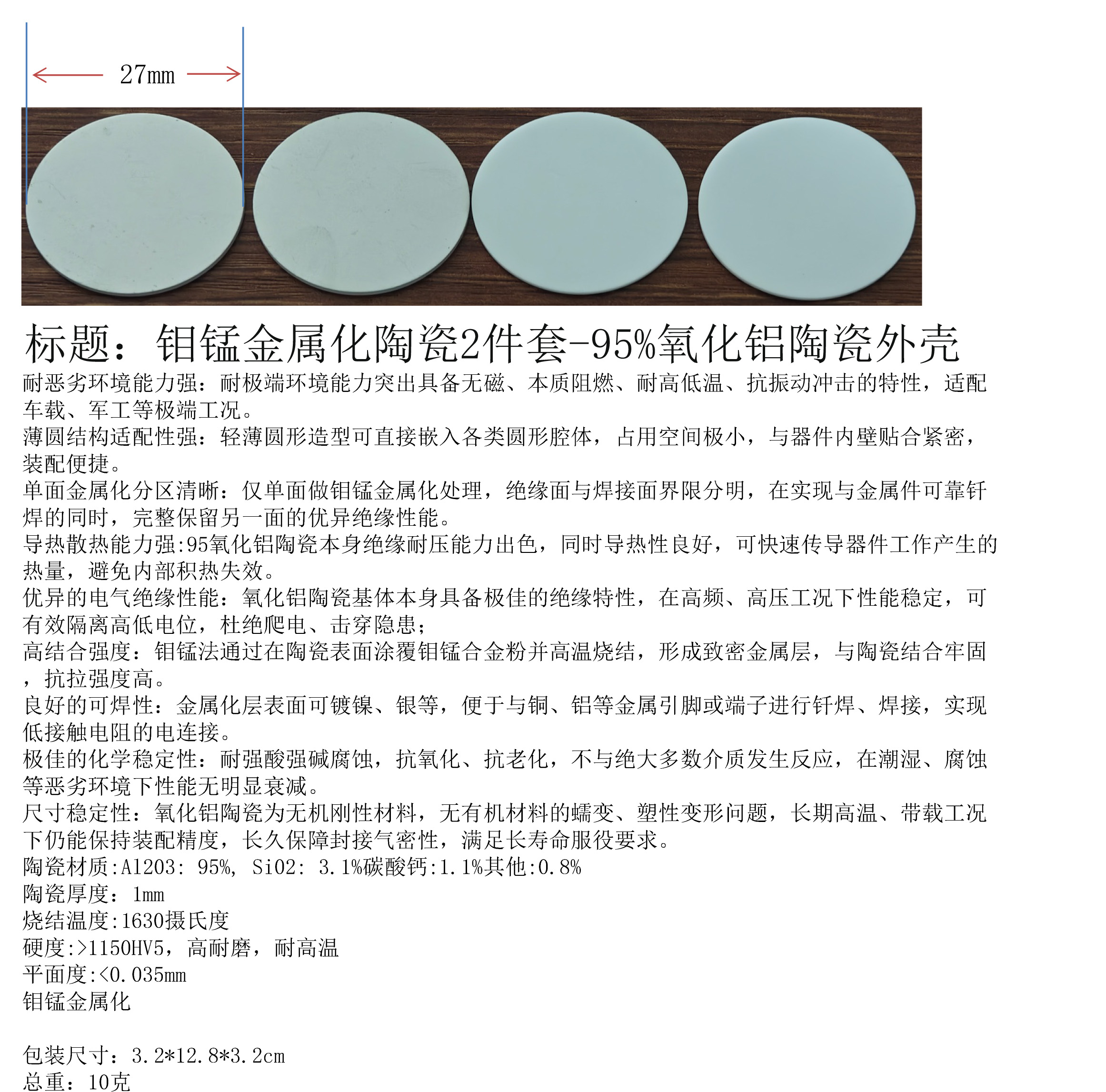 产品名称:钼锰金属化陶瓷2件套-95%氧化铝陶瓷外壳