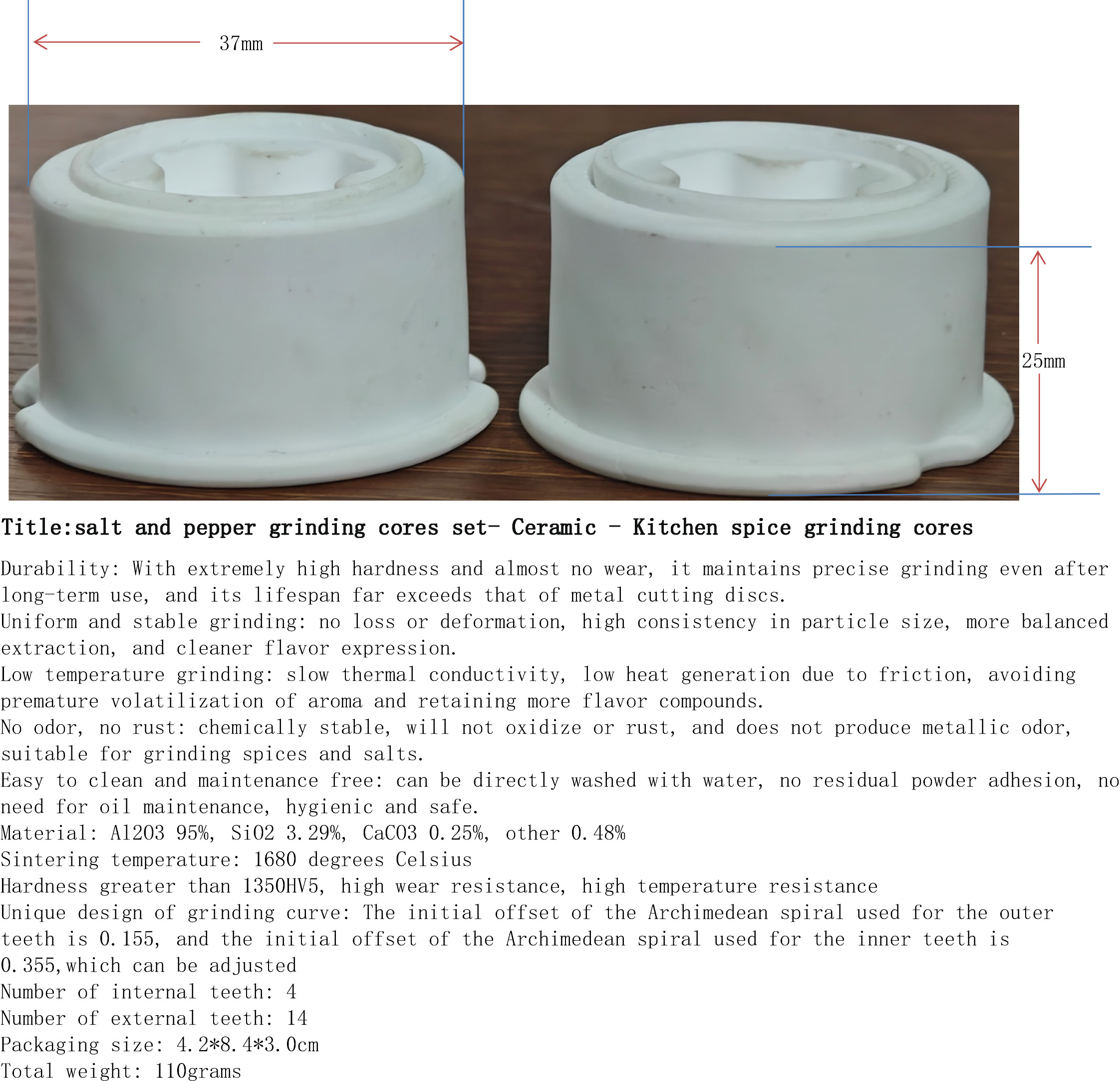 产品名称:海盐与胡椒研磨芯2件套-陶瓷-厨房香料磨芯