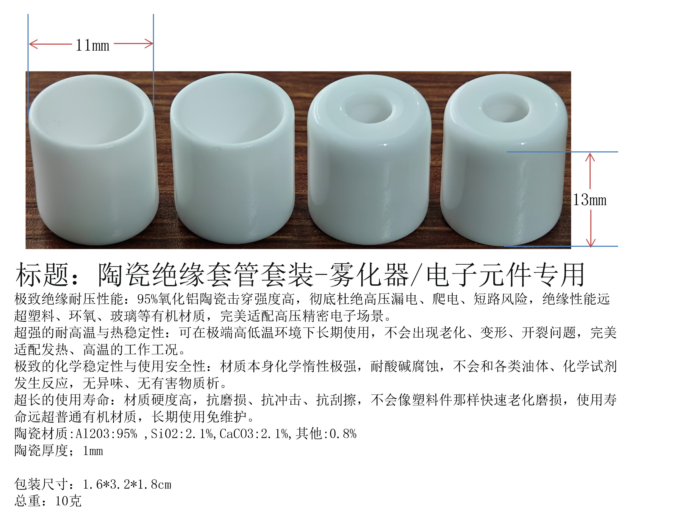 产品名称:陶瓷绝缘套管套装-雾化器/电子元件专用
