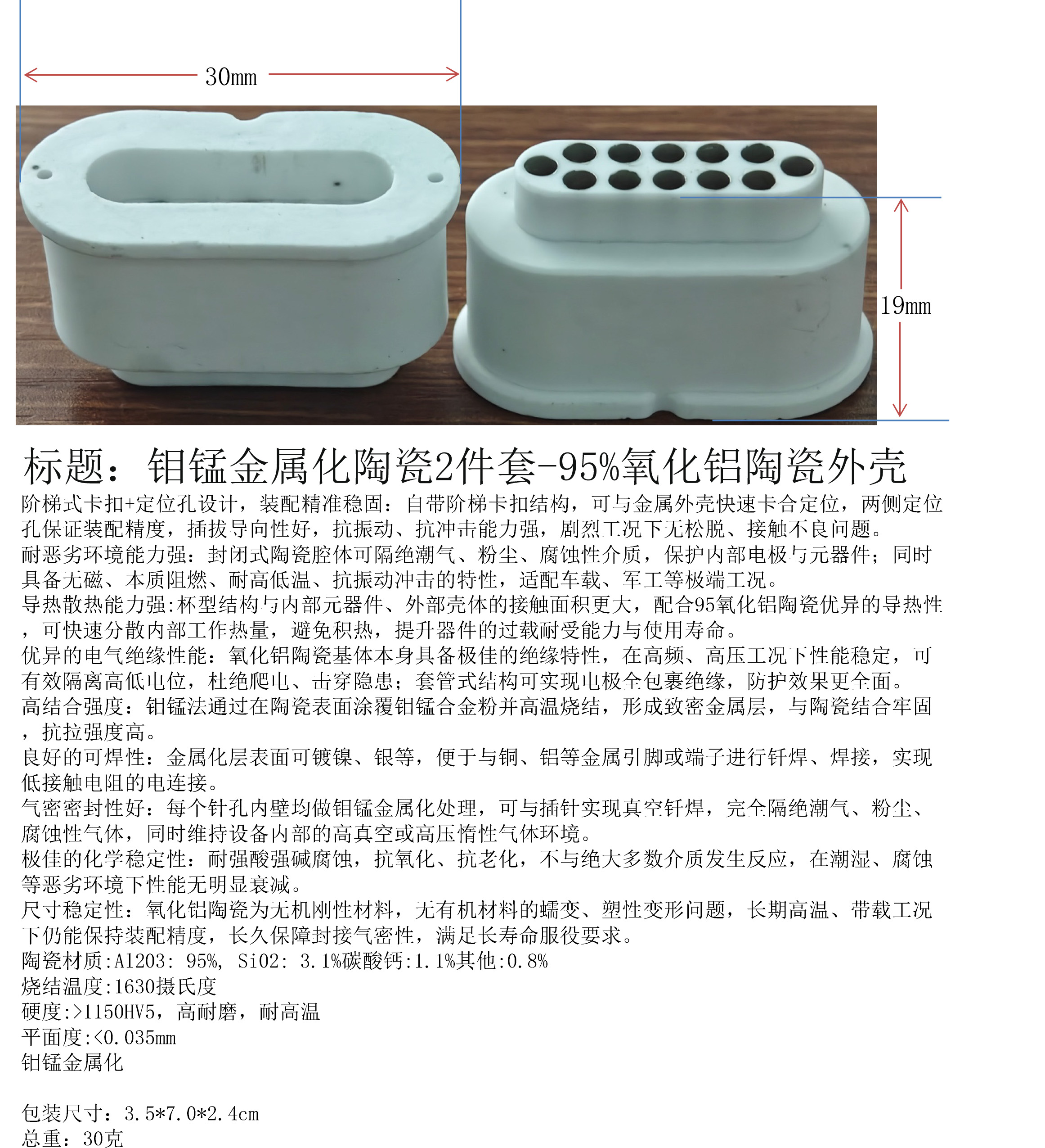 产品名称:钼锰金属化陶瓷2件套-95%氧化铝陶瓷外壳