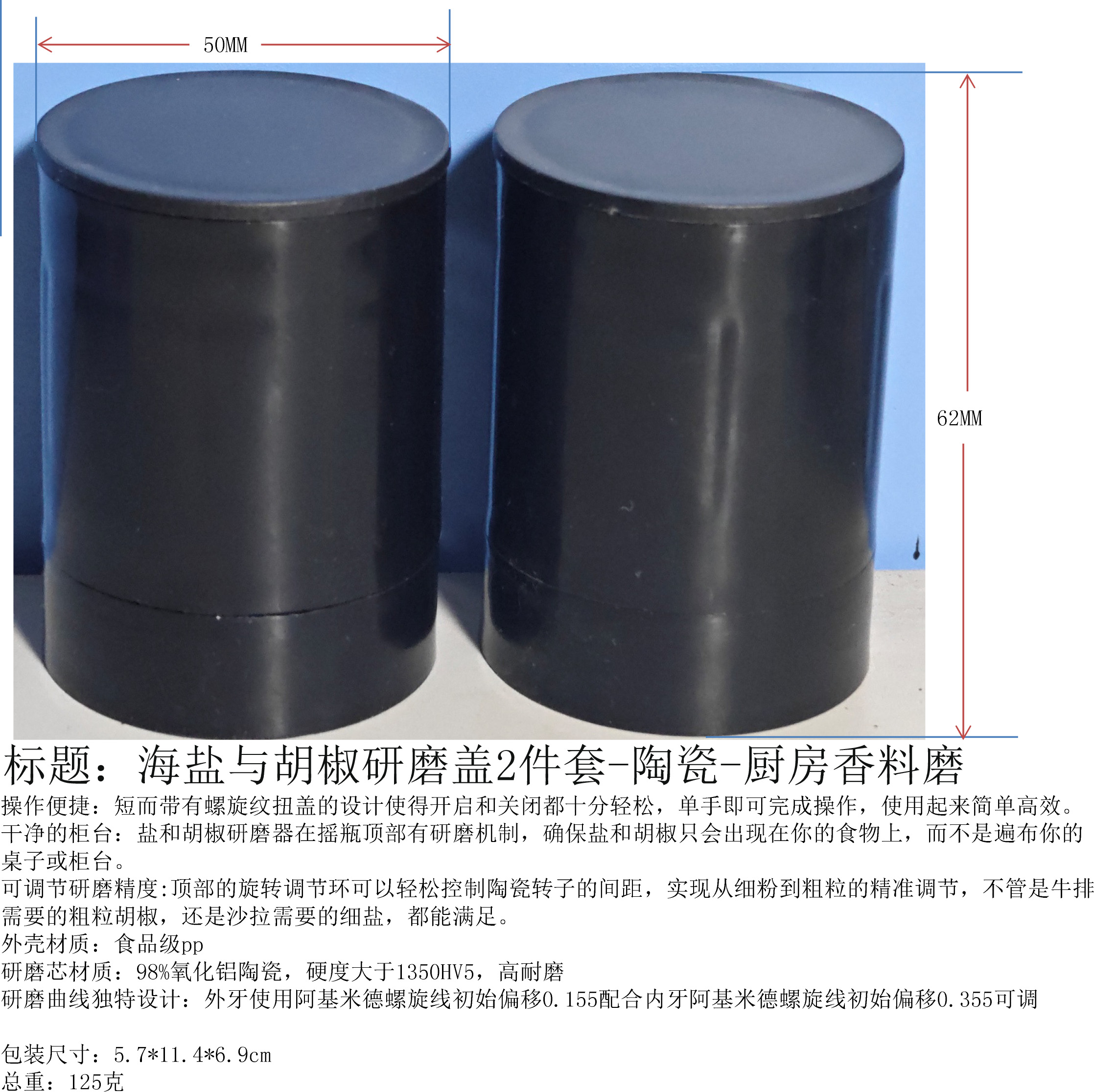 产品名称:海盐与胡椒研磨盖2件套-陶瓷-厨房香料磨