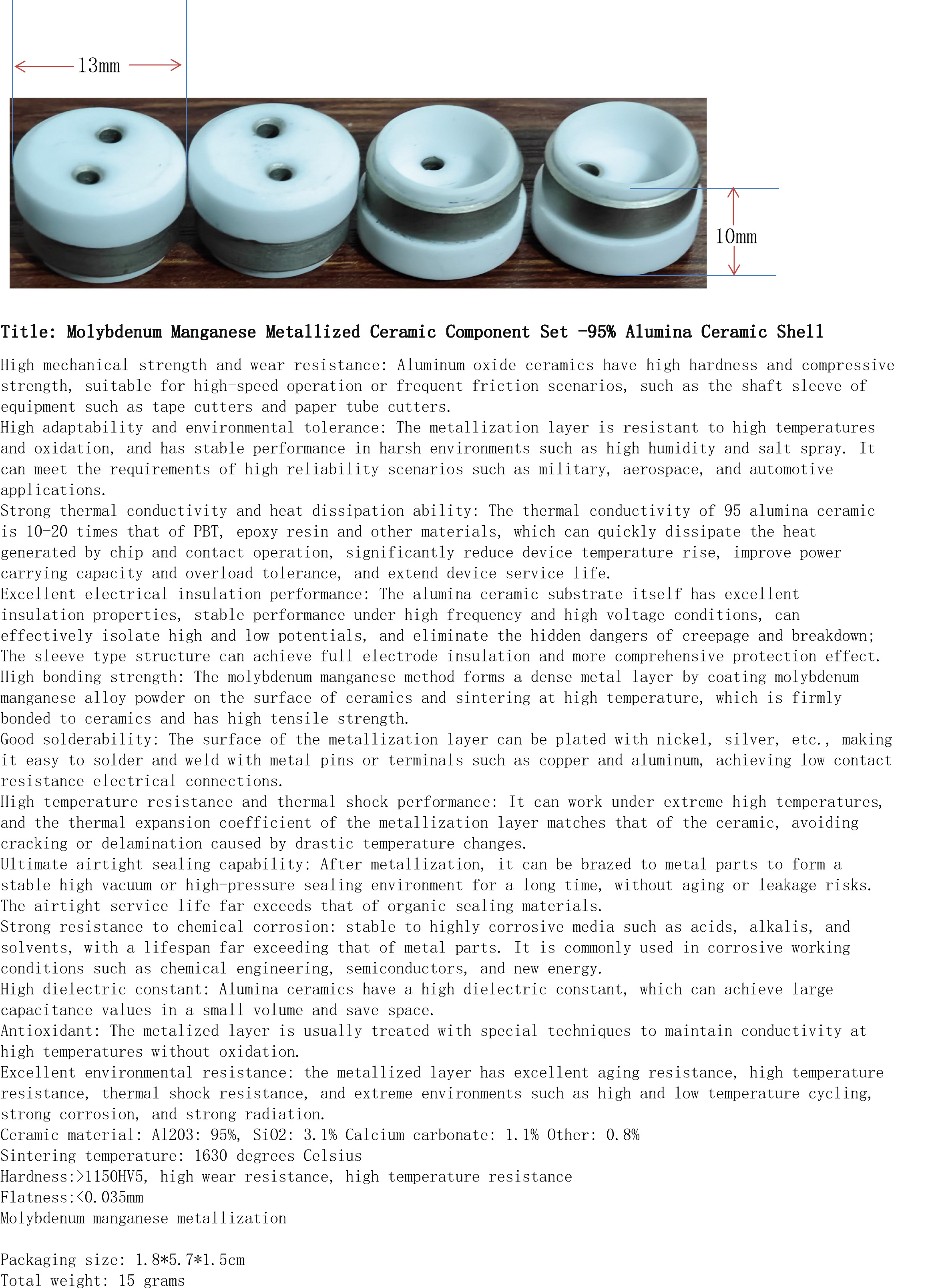 产品名称:钼锰金属化陶瓷2件套-95%氧化铝陶瓷外壳
