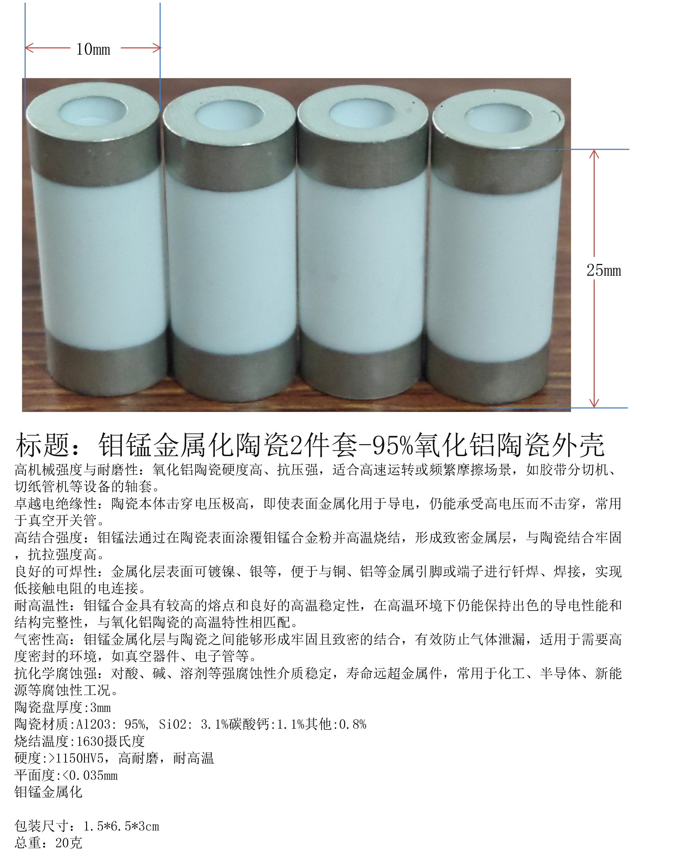 产品名称:钼锰金属化陶瓷2件套-95%氧化铝陶瓷外壳