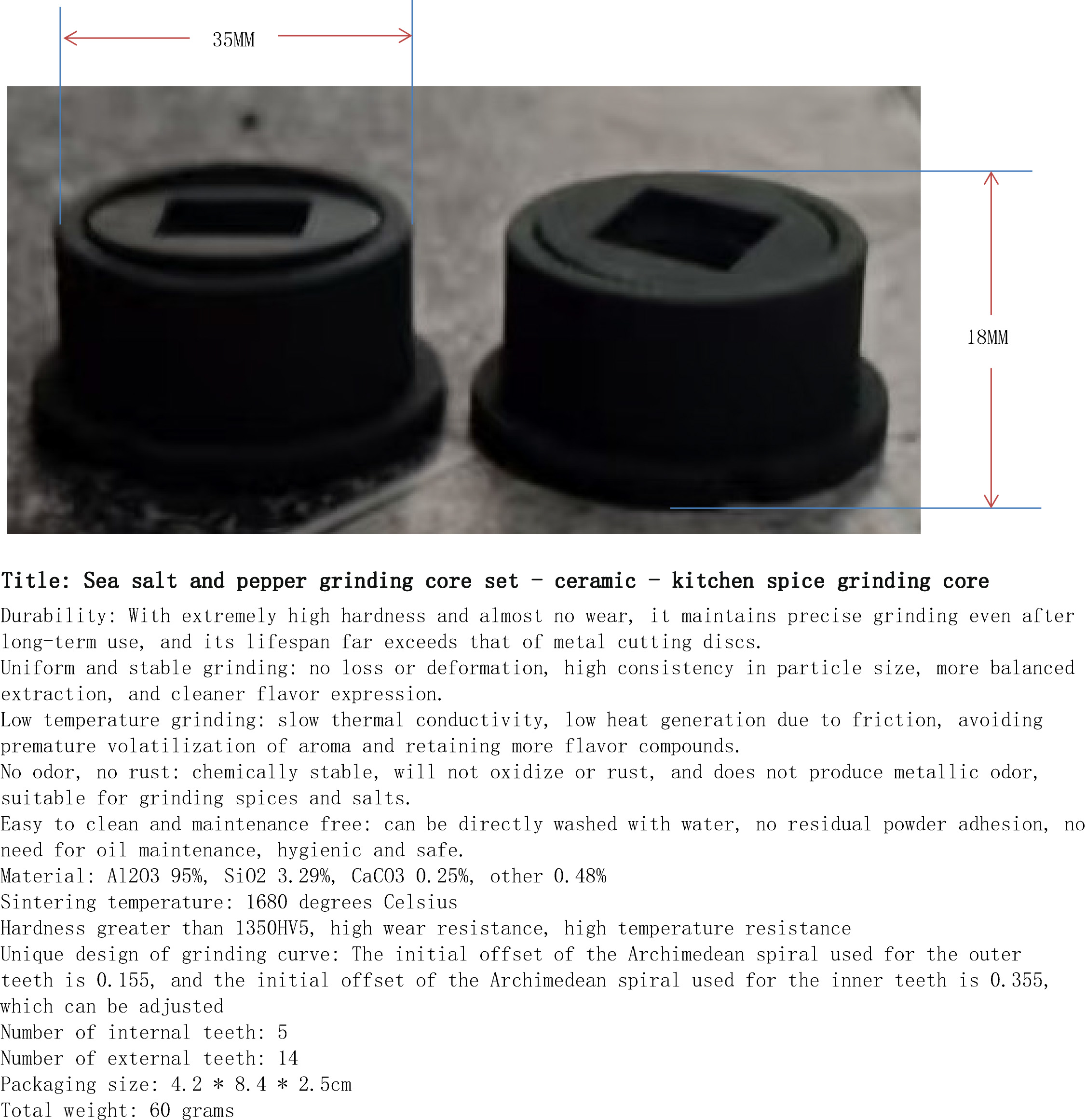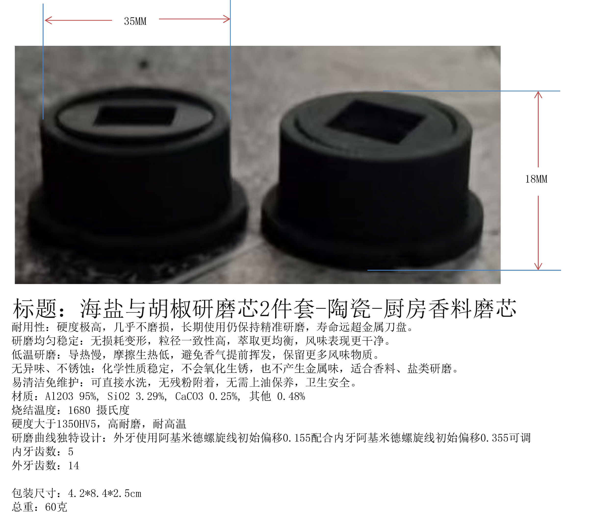 产品名称:海盐与胡椒研磨芯2件套-陶瓷-厨房香料磨芯