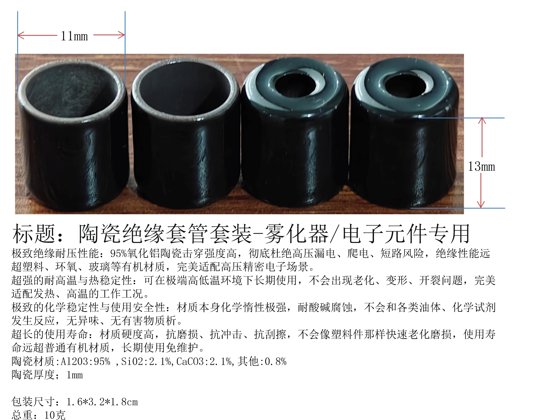 产品名称:陶瓷绝缘套管套装-雾化器/电子元件专用