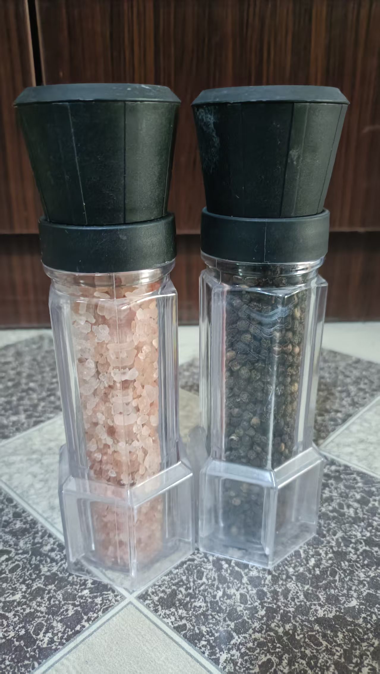 密封盖=新鲜香料:我们的密封盖通过防潮使您的喜马拉雅海盐、胡椒粉和香料保持新鲜和持久。同时盐和胡椒研磨器在摇瓶顶部有研磨机制,确保盐和胡椒只会出现在你的食物上,而不是遍布你的桌子或柜台。保持干净的柜台。透明的瓶身也更方便观察香料的情况,可以及时察觉香料的缺少,进行补充。也可以观察香料是否变质等情况。