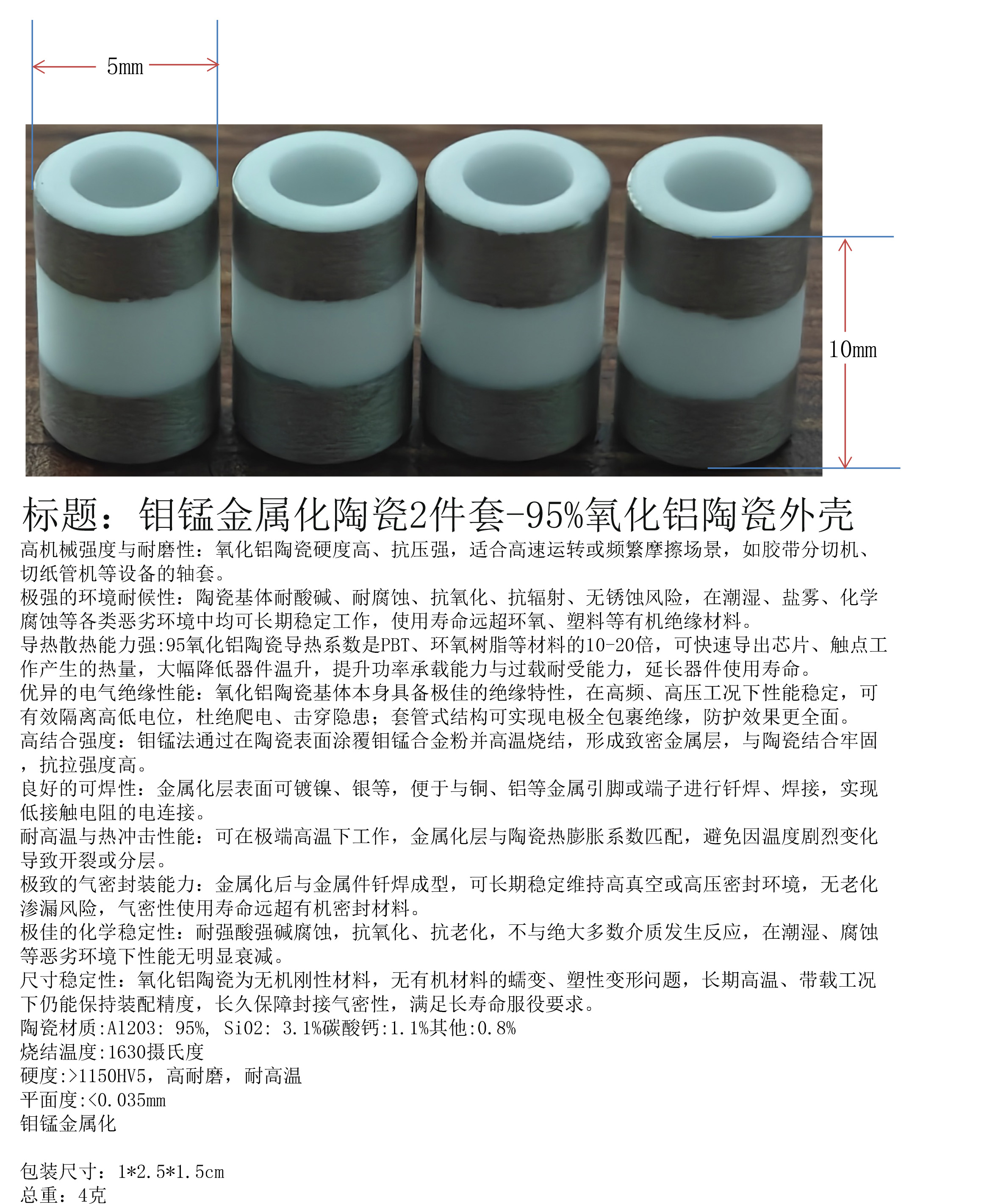 产品名称:钼锰金属化陶瓷2件套-95%氧化铝陶瓷外壳
