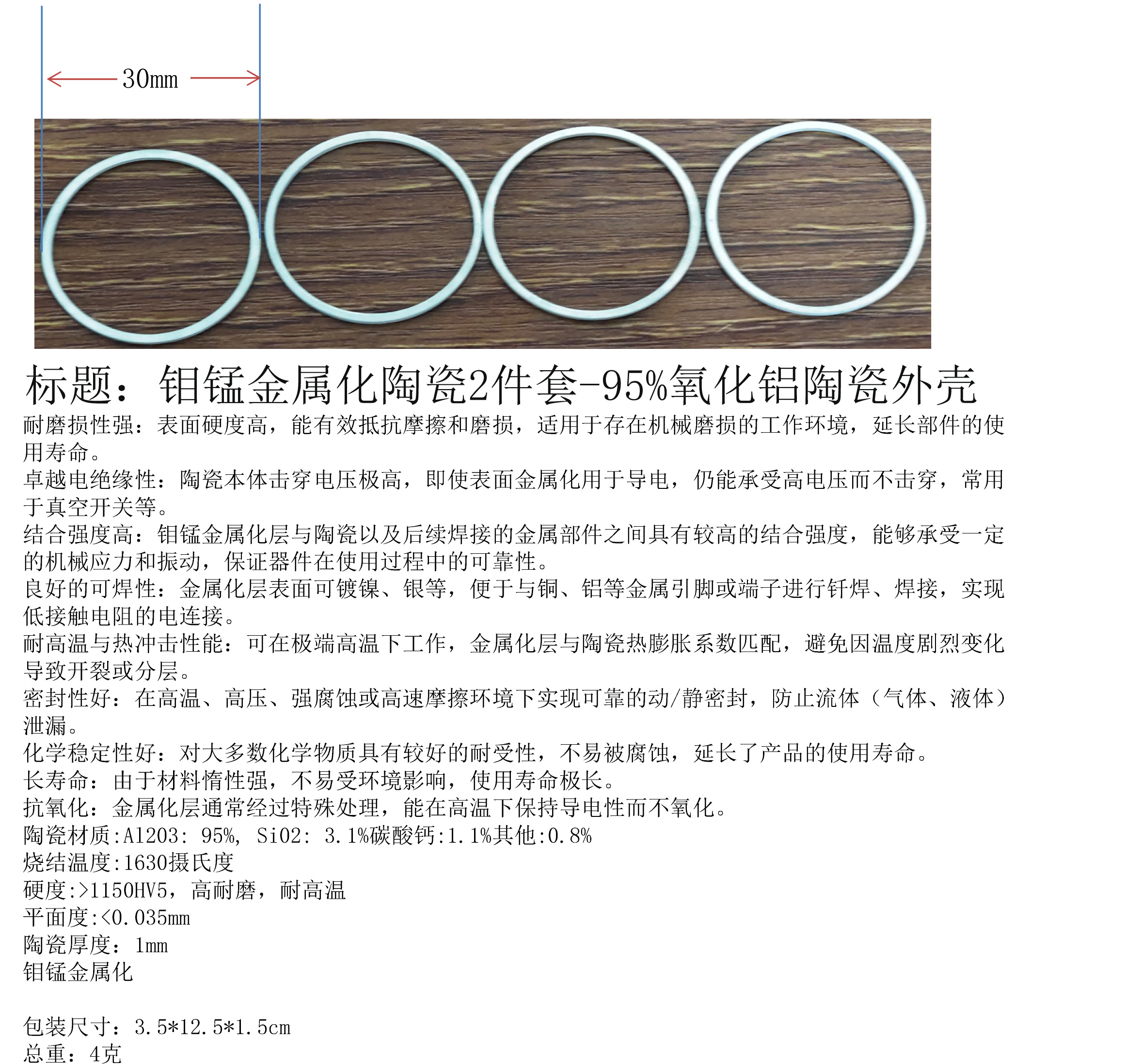 产品名称:钼锰金属化陶瓷2件套-95%氧化铝陶瓷外壳