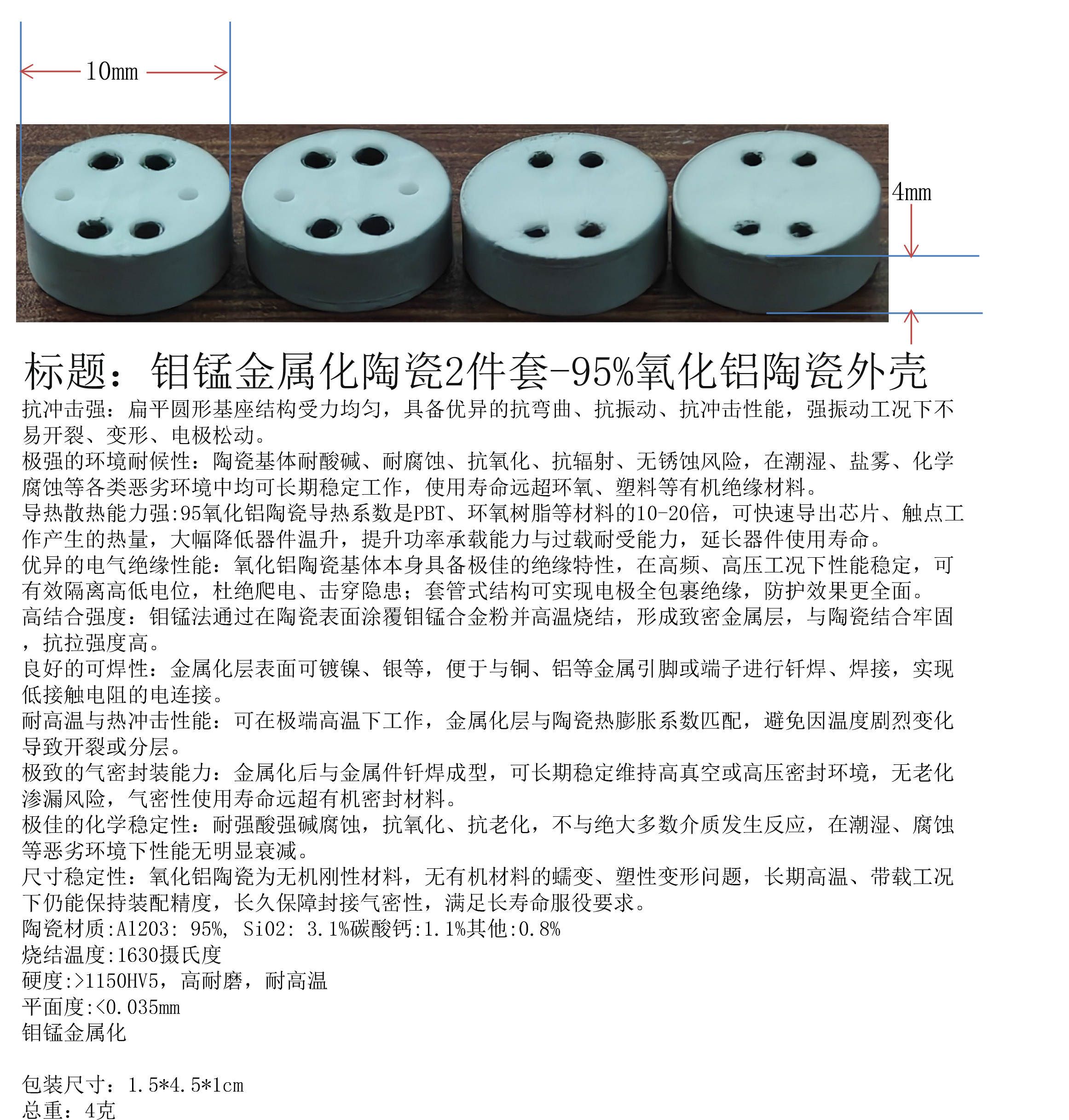 产品名称:钼锰金属化陶瓷2件套-95%氧化铝陶瓷外壳