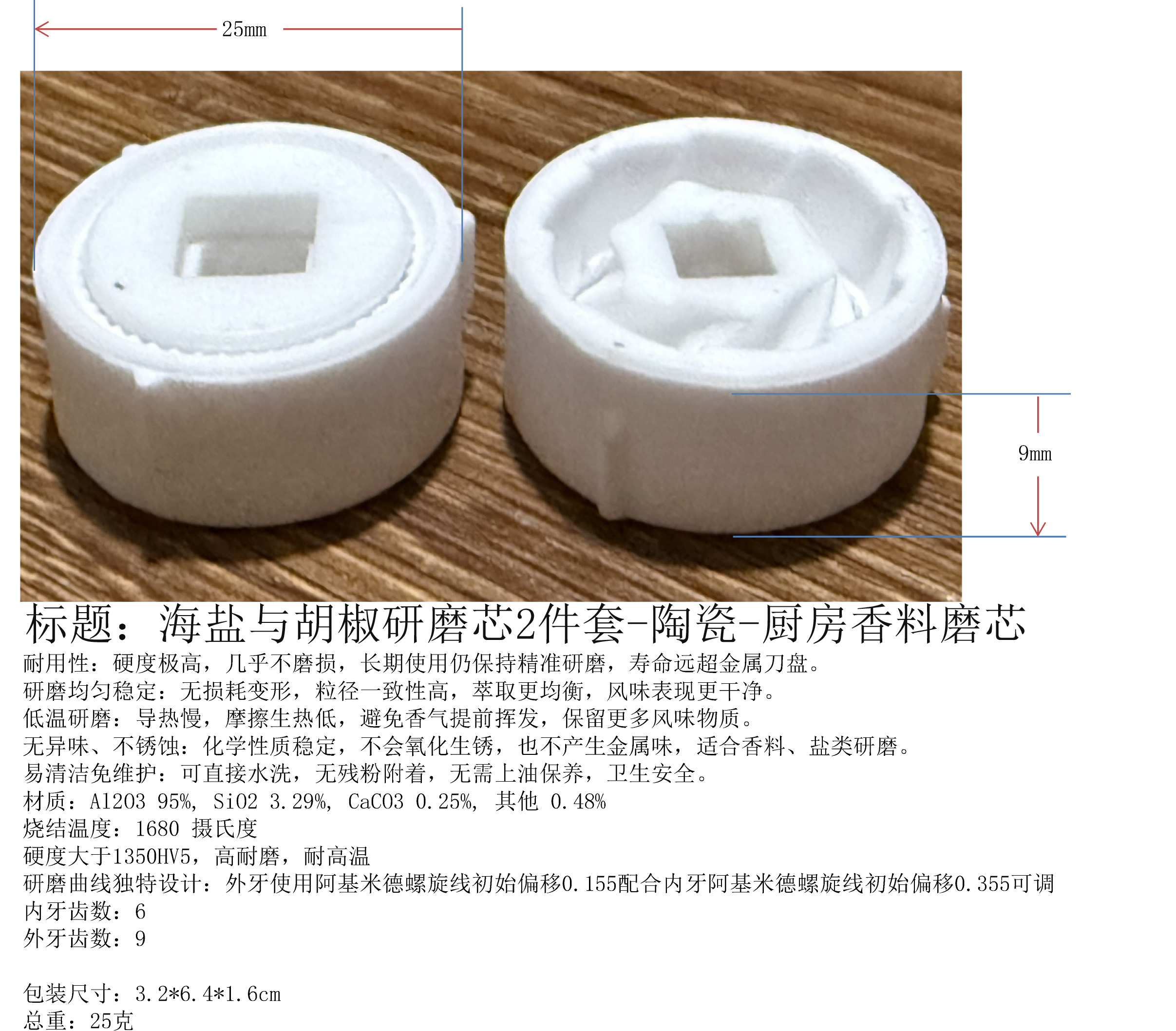 产品名称:海盐与胡椒研磨芯2件套-陶瓷-厨房香料磨芯