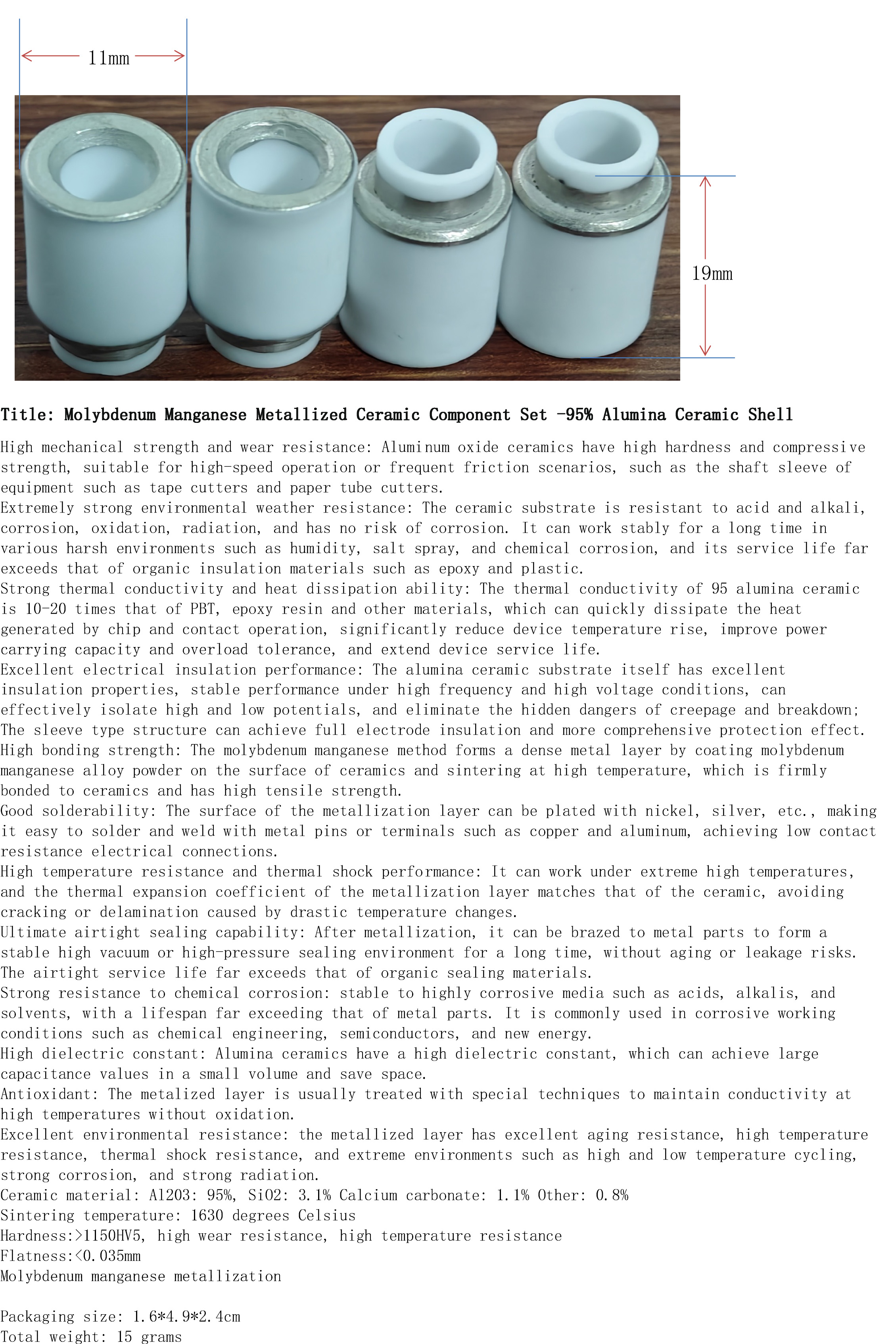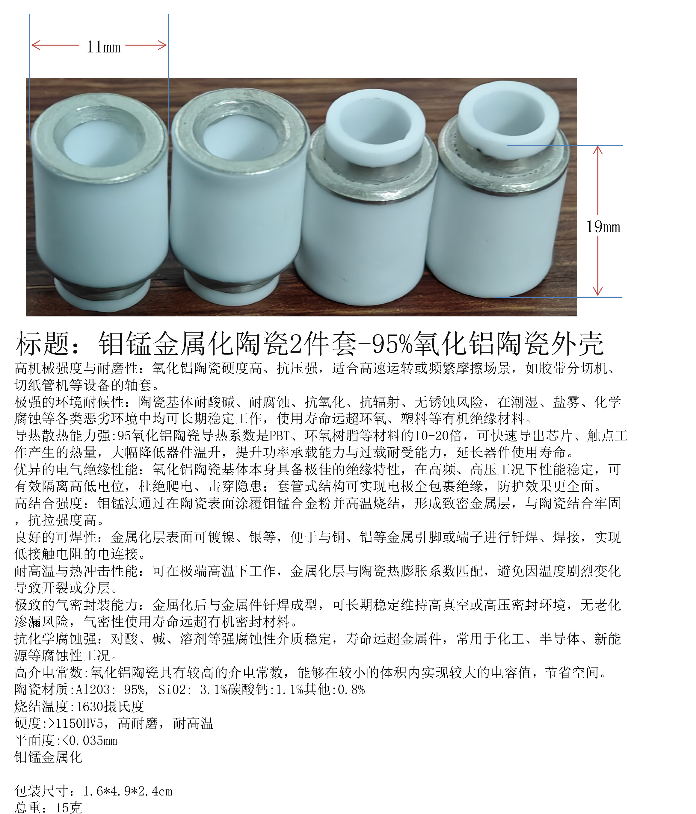产品名称:钼锰金属化陶瓷2件套-95%氧化铝陶瓷外壳