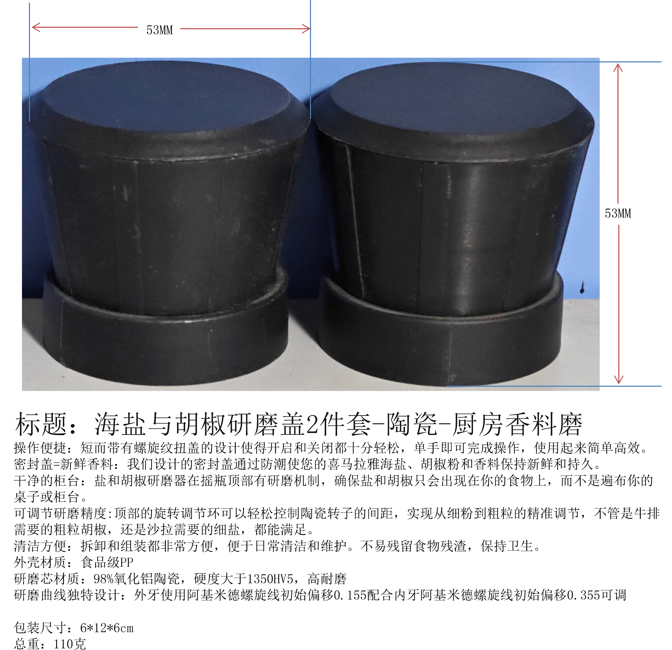 产品名称:海盐与胡椒研磨盖2件套-陶瓷-厨房香料磨