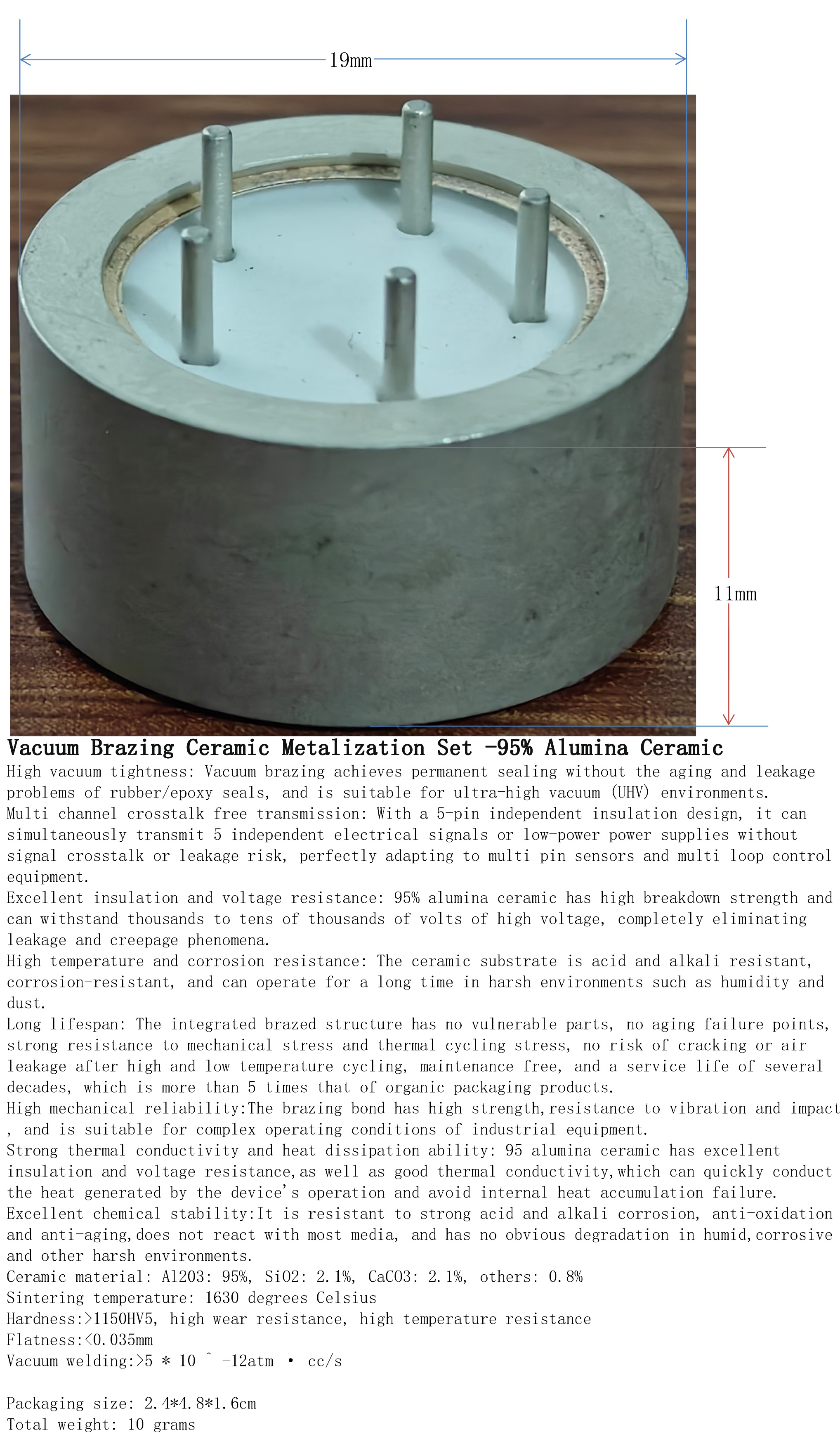 优异绝缘耐压:95%氧化铝陶瓷击穿强度高,可承受数千至数万伏高压,彻底杜绝漏电和爬电现象。