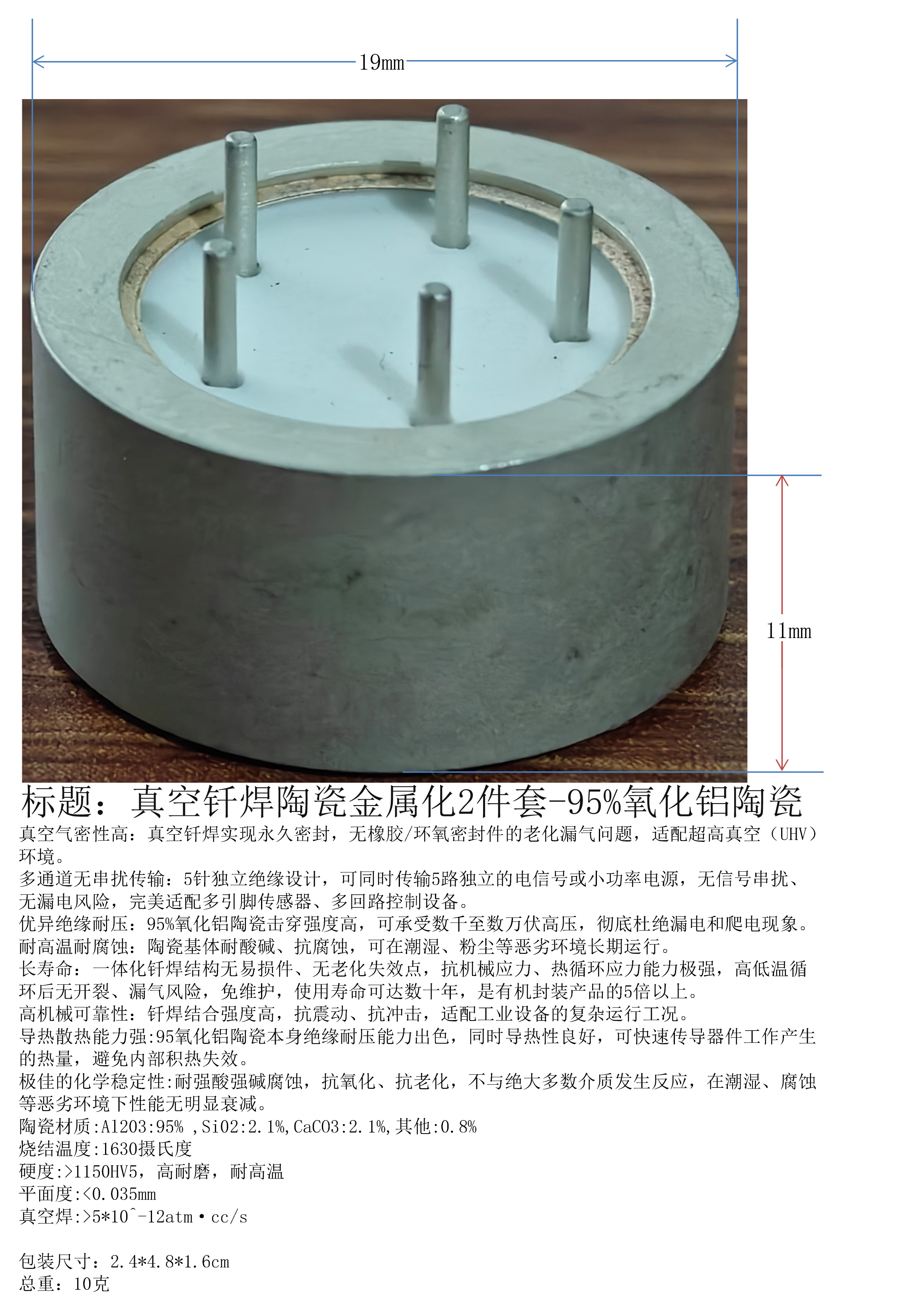 产品名称:真空钎焊陶瓷金属化2件套-95%氧化铝陶瓷