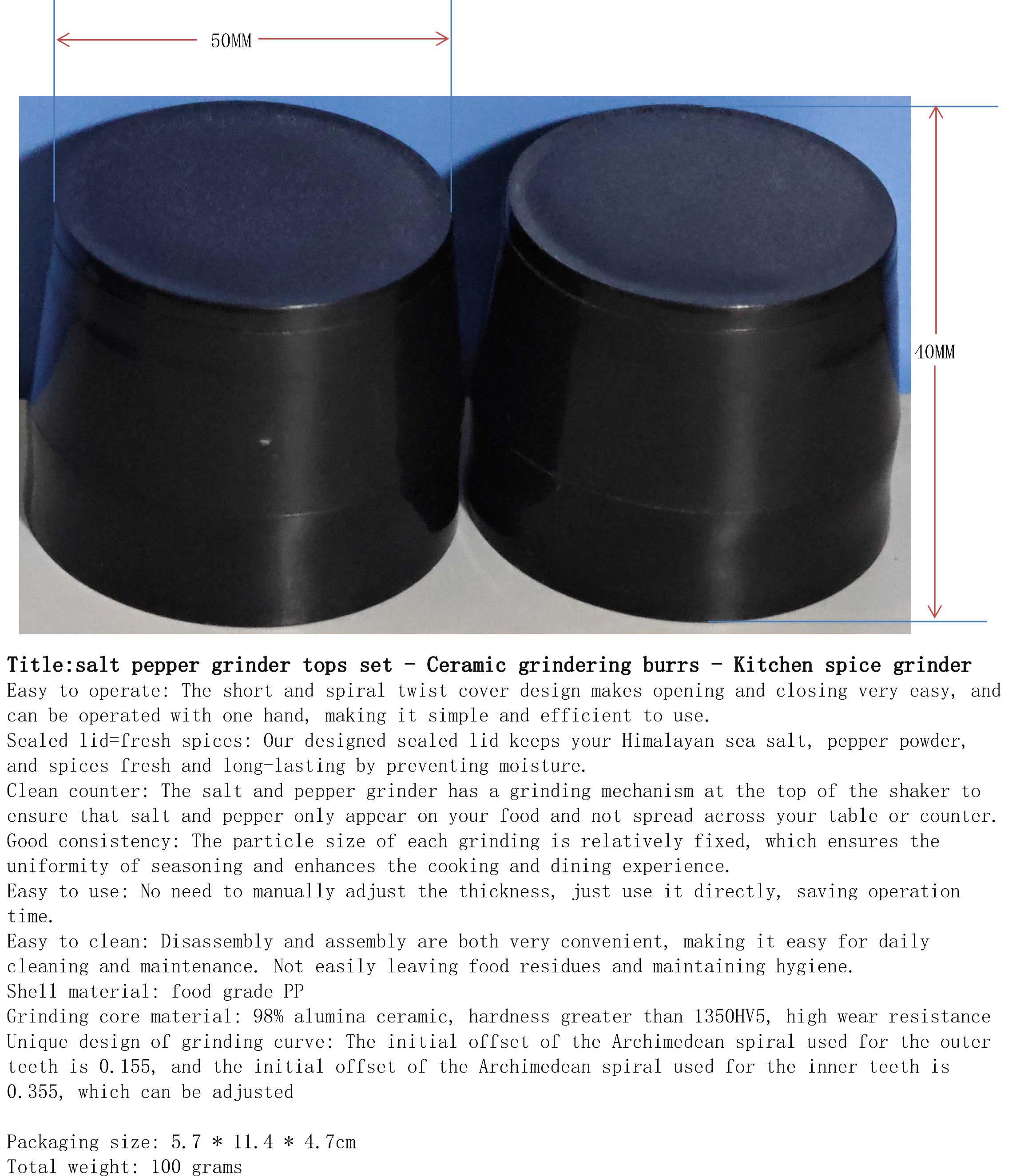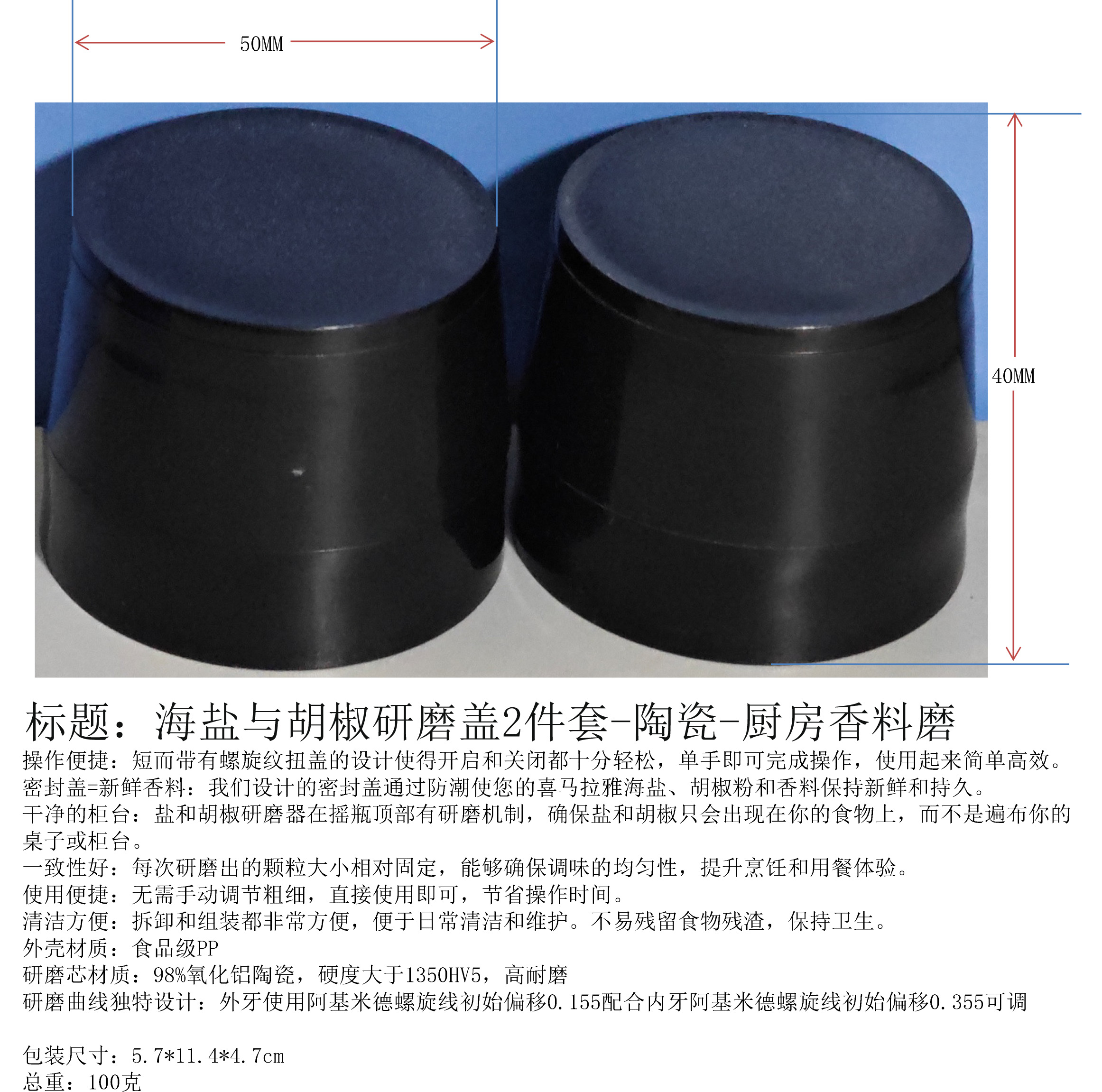 产品名称:海盐与胡椒研磨盖2件套-陶瓷-厨房香料磨