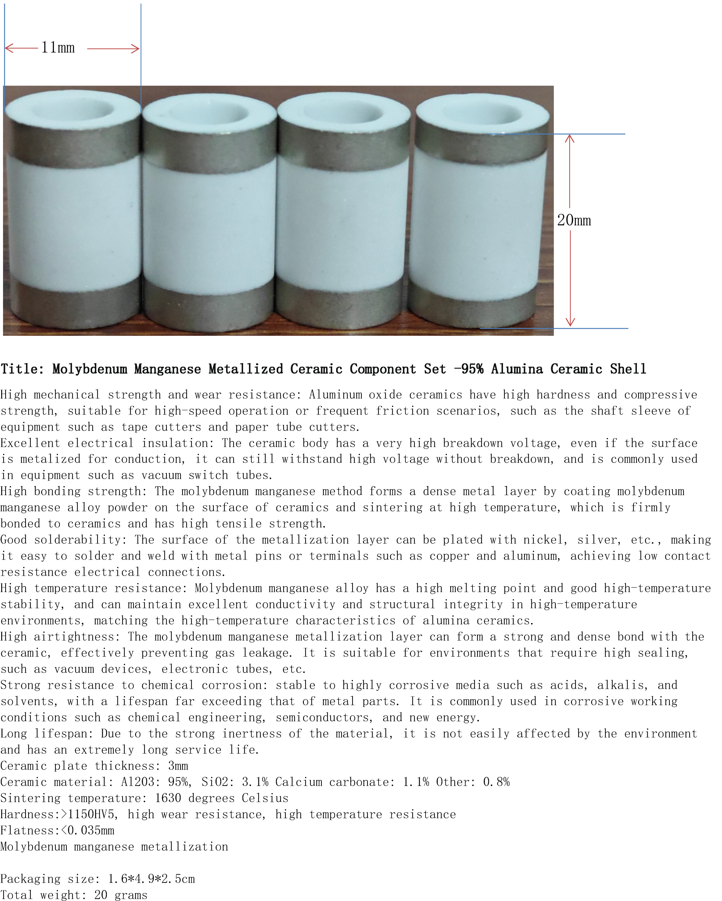 产品名称:钼锰金属化陶瓷2件套-95%氧化铝陶瓷外壳