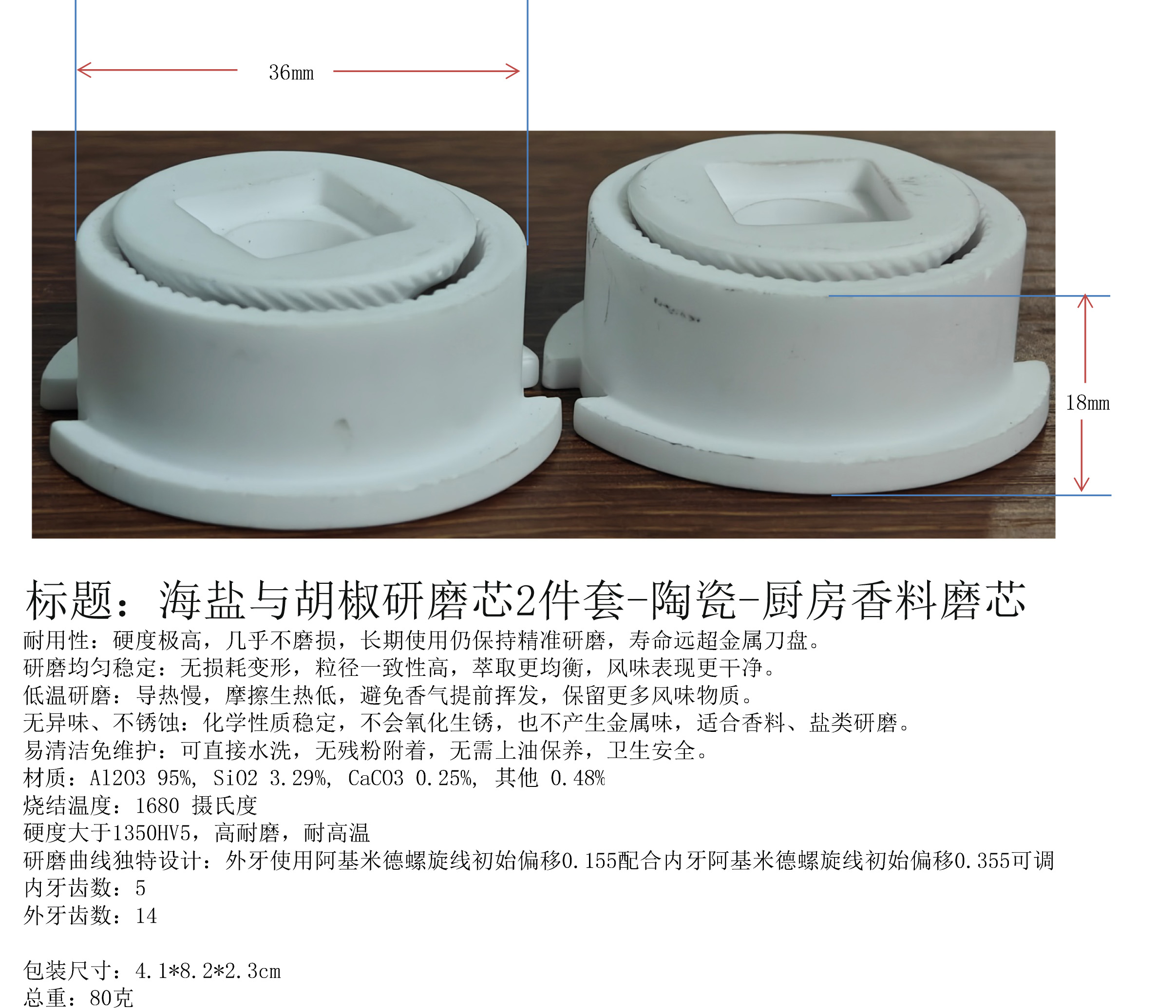 产品名称:海盐与胡椒研磨芯2件套-陶瓷-厨房香料磨芯