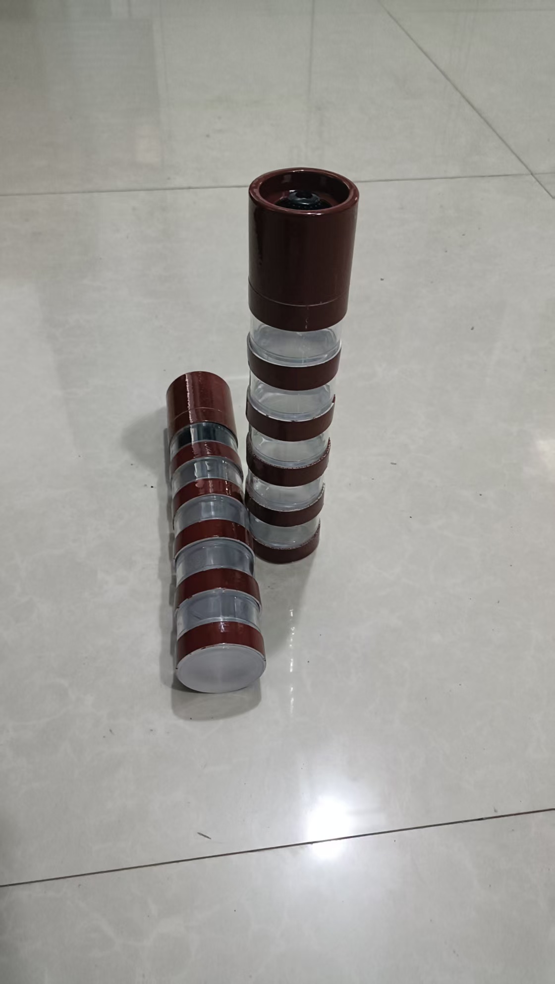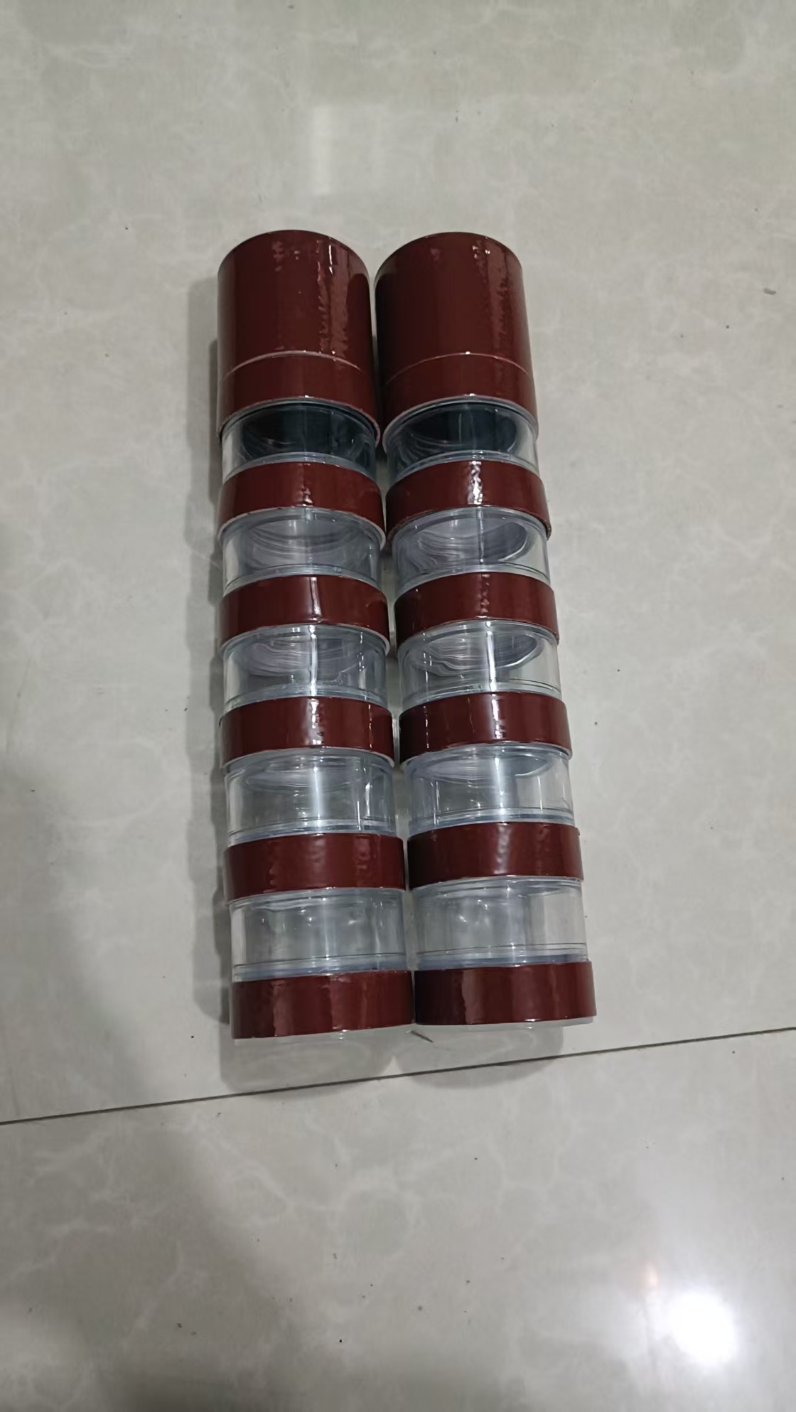 多个单一功能的研磨器,一共有五层,想用哪层的香料,只需要将对应层数的罐子扭出放置研磨器下方即可。
