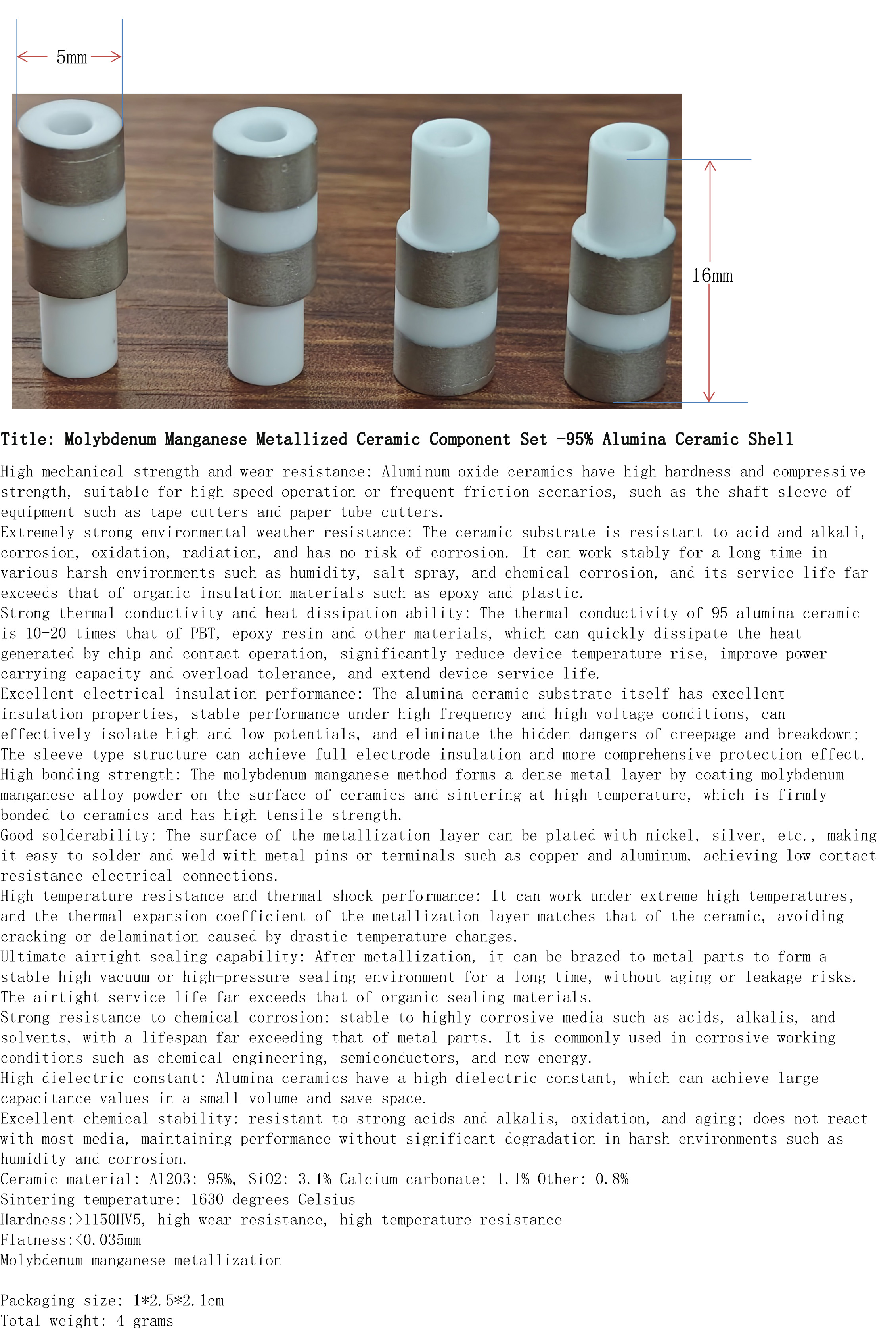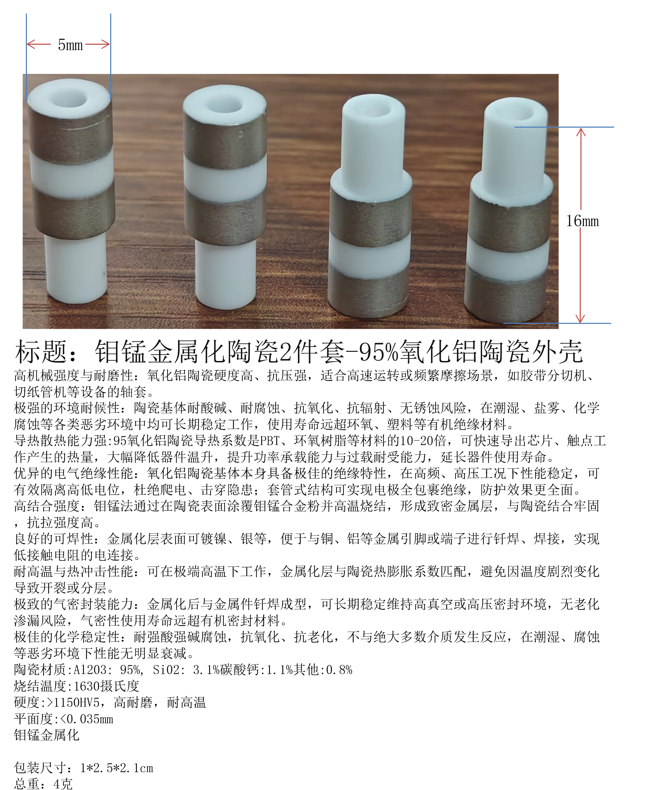 产品名称:钼锰金属化陶瓷2件套-95%氧化铝陶瓷外壳