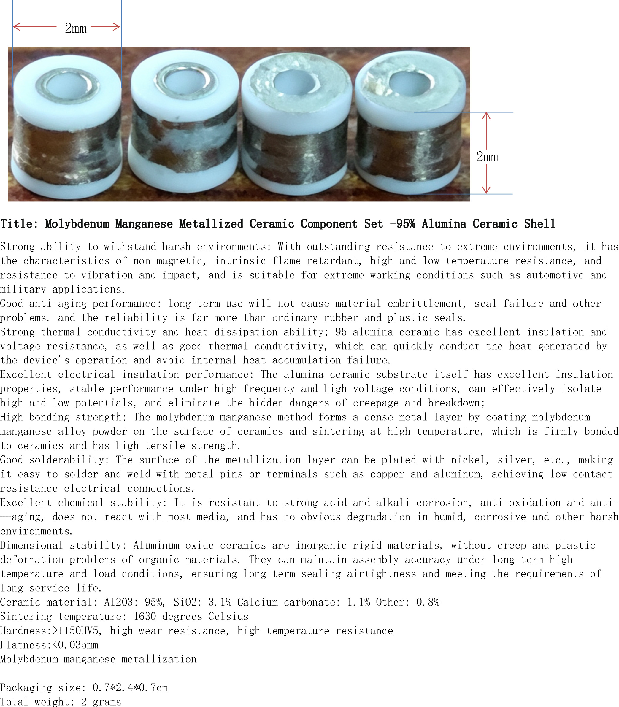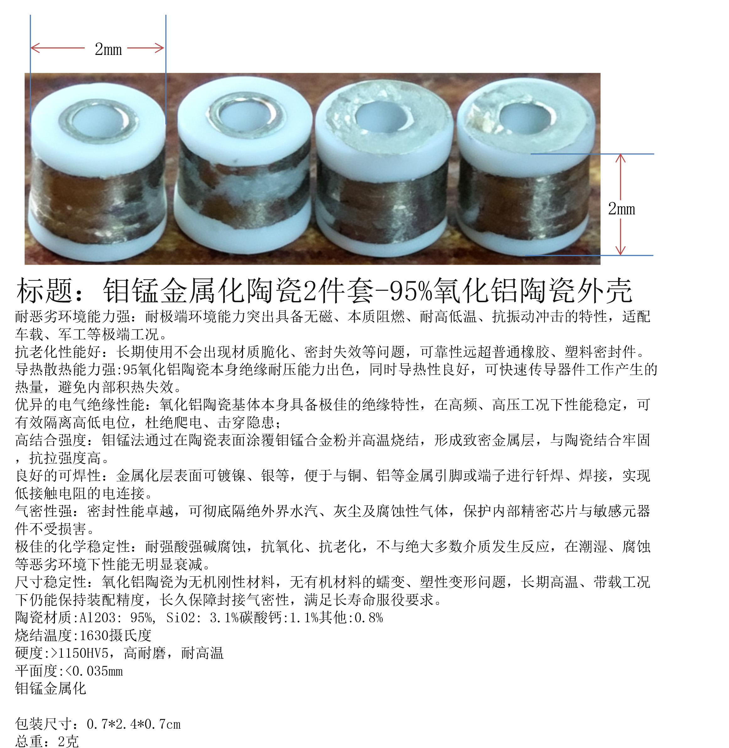 产品名称:钼锰金属化陶瓷2件套-95%氧化铝陶瓷外壳