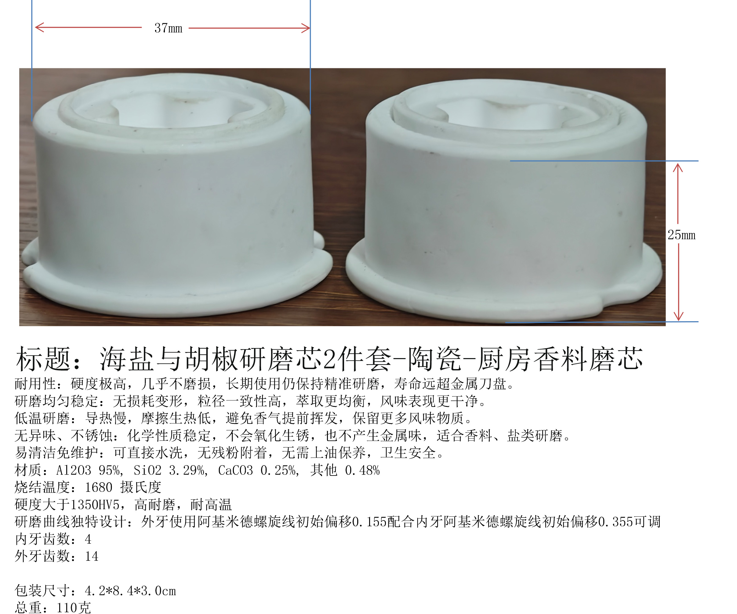 产品名称:海盐与胡椒研磨芯2件套-陶瓷-厨房香料磨芯