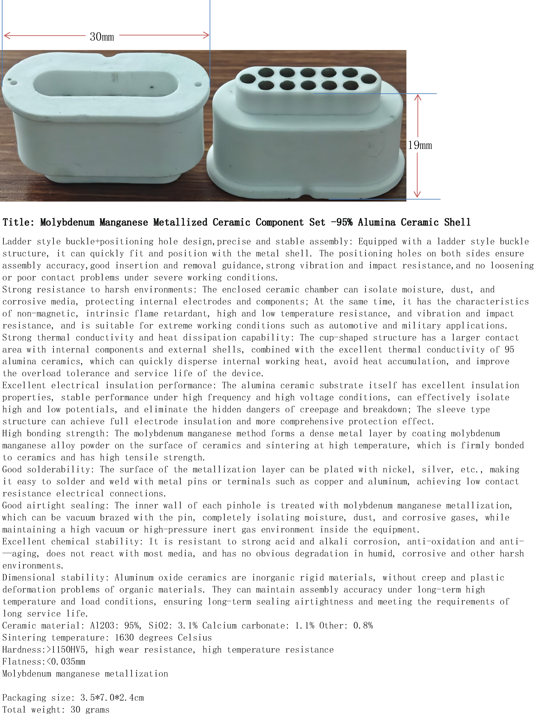 产品名称:钼锰金属化陶瓷2件套-95%氧化铝陶瓷外壳