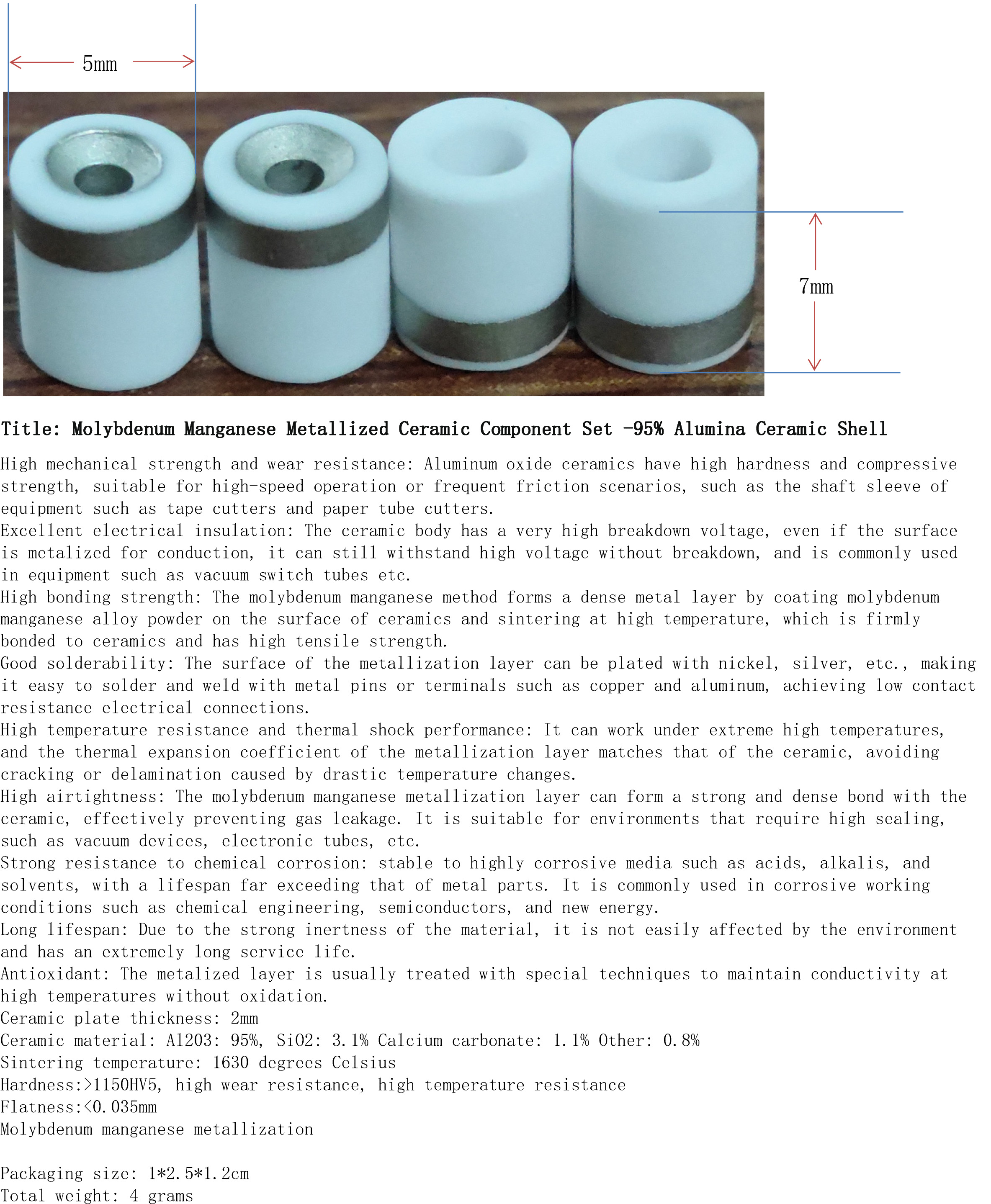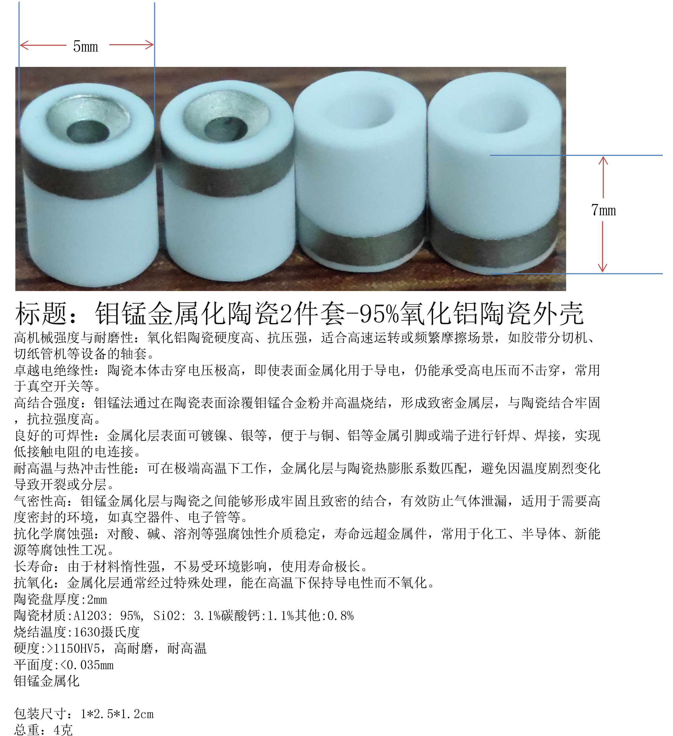 产品名称:钼锰金属化陶瓷2件套-95%氧化铝陶瓷外壳