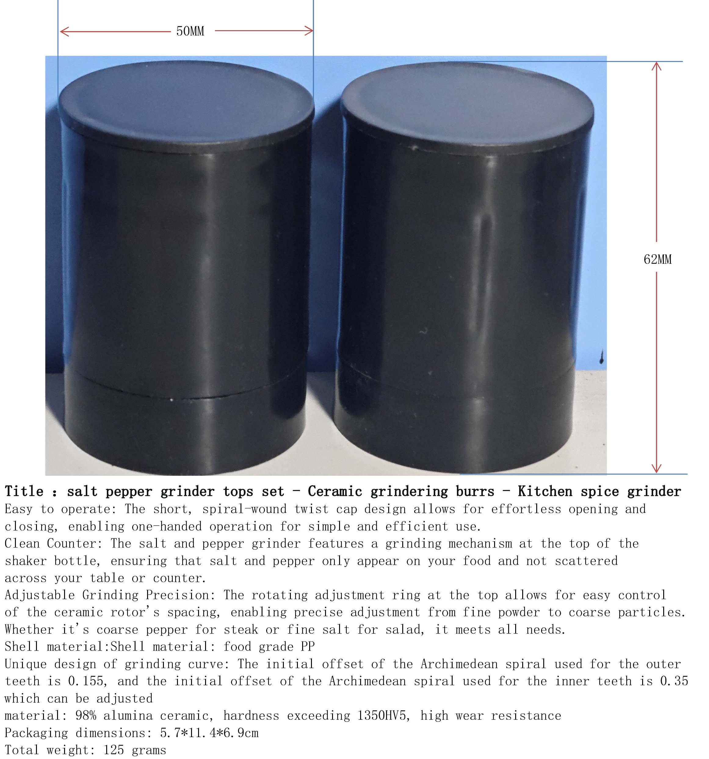 产品名称:海盐与胡椒研磨盖2件套-陶瓷-厨房香料磨