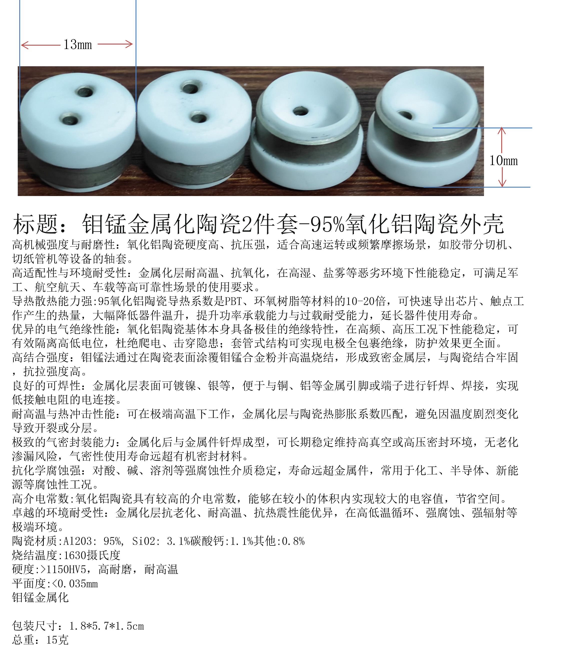 产品名称:钼锰金属化陶瓷2件套-95%氧化铝陶瓷外壳