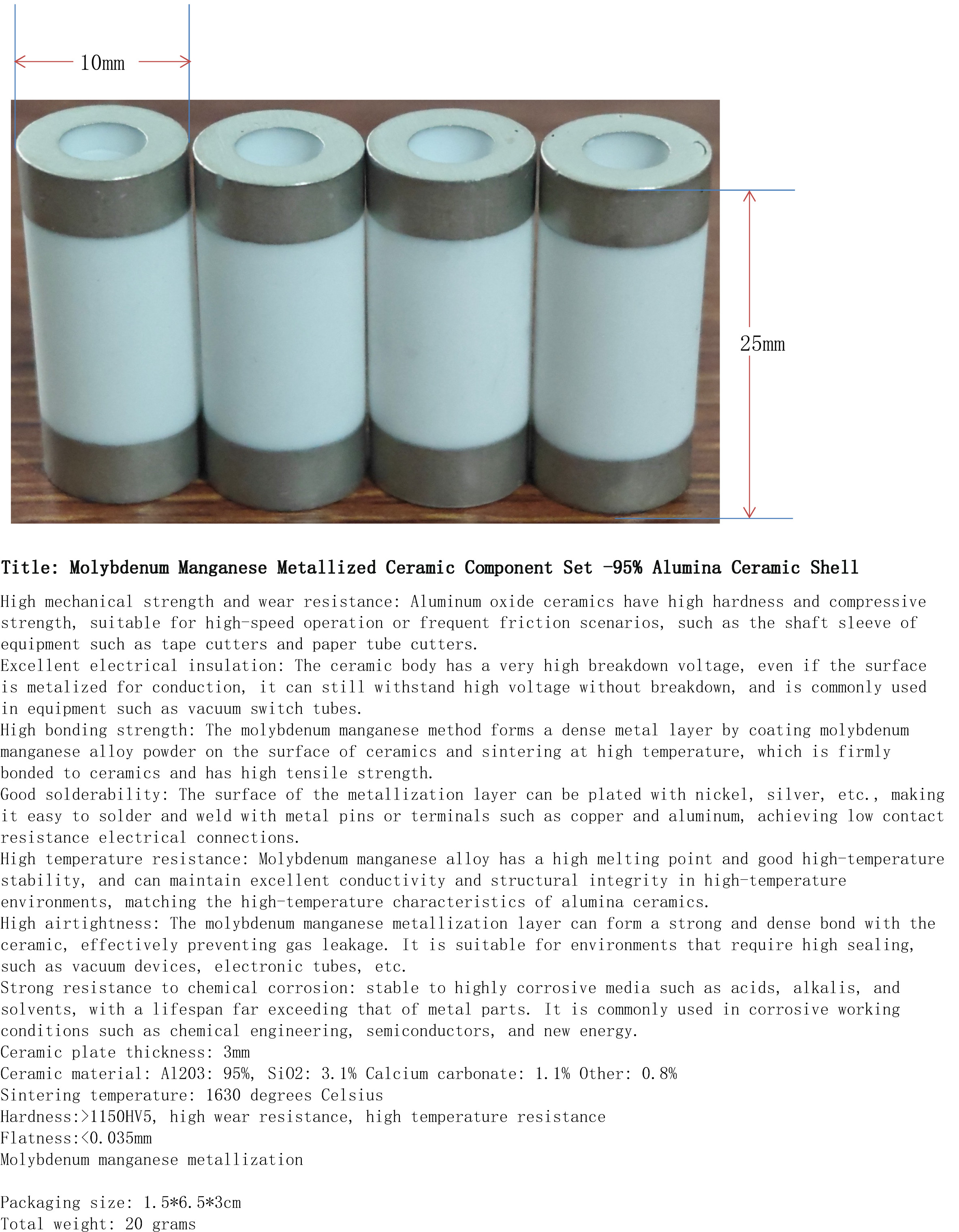 产品名称:钼锰金属化陶瓷2件套-95%氧化铝陶瓷外壳