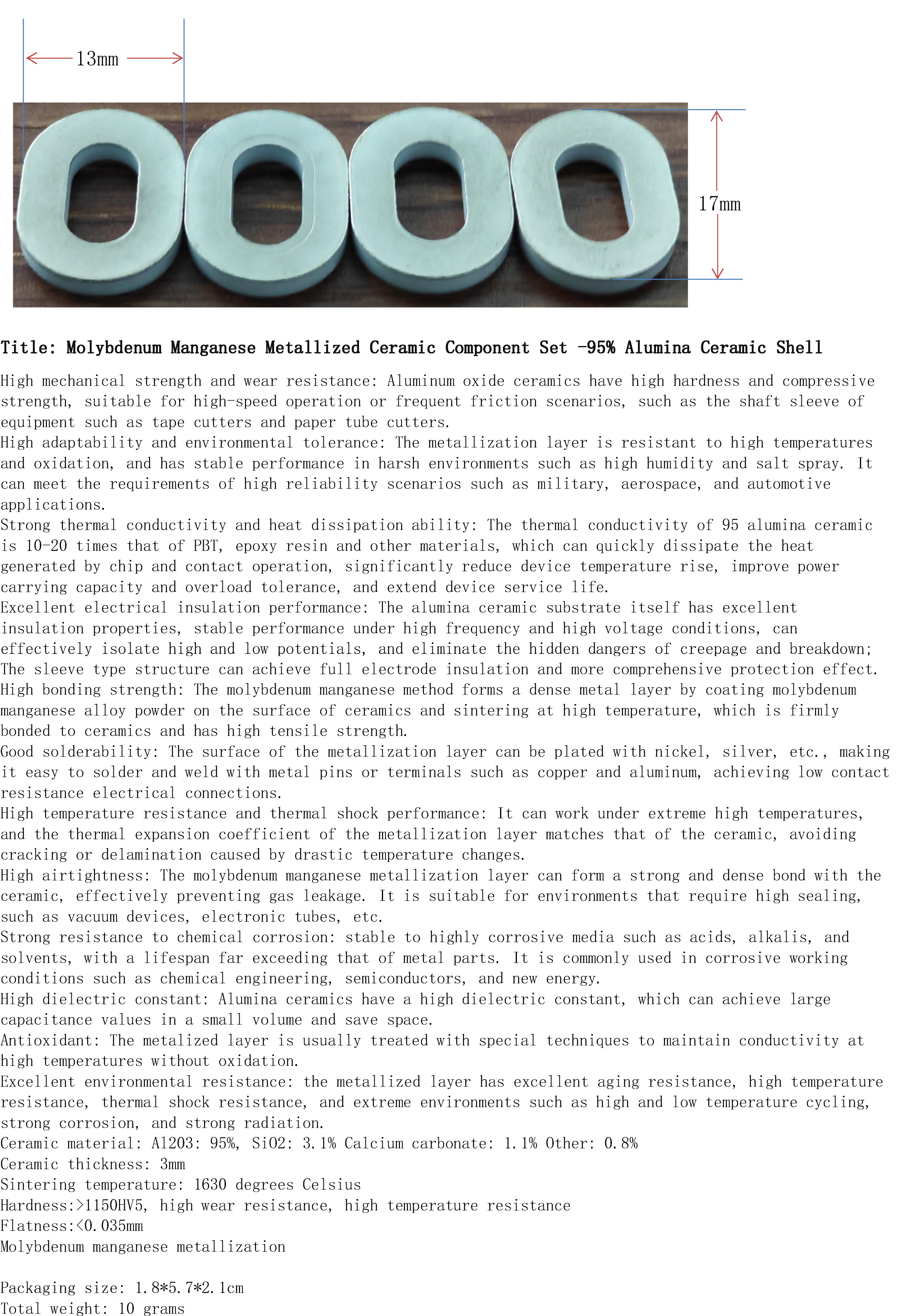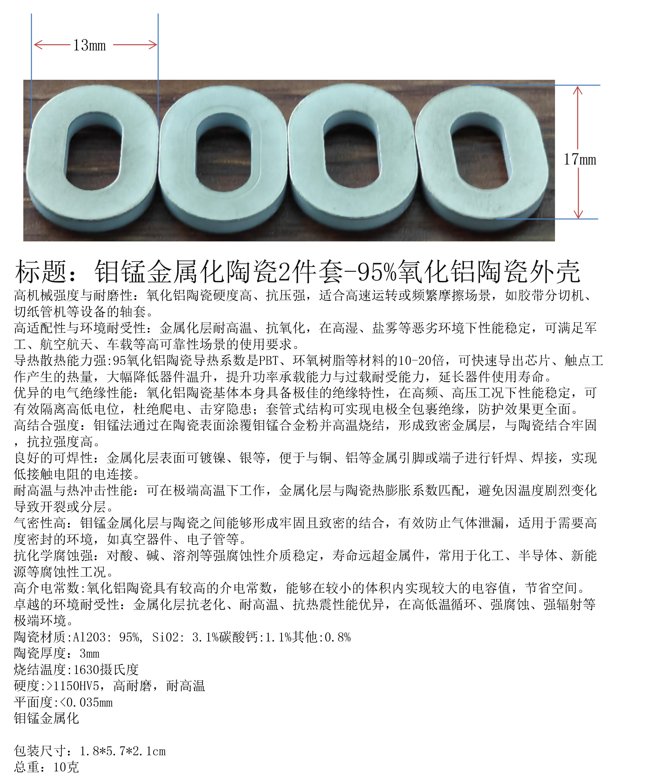 产品名称:钼锰金属化陶瓷2件套-95%氧化铝陶瓷外壳