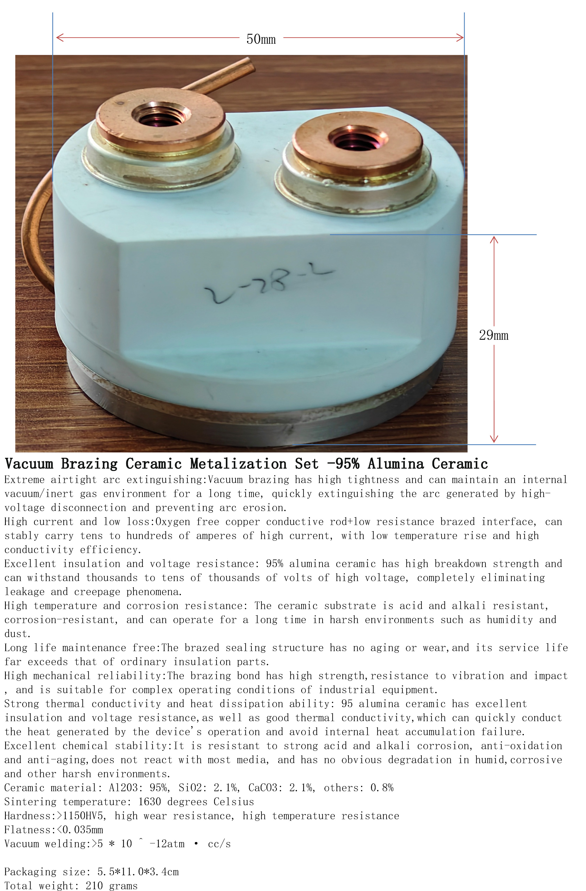 大电流低损耗:无氧铜导电杆+低电阻钎焊界面,可稳定承载几十至数百安培大电流,温升低、导电