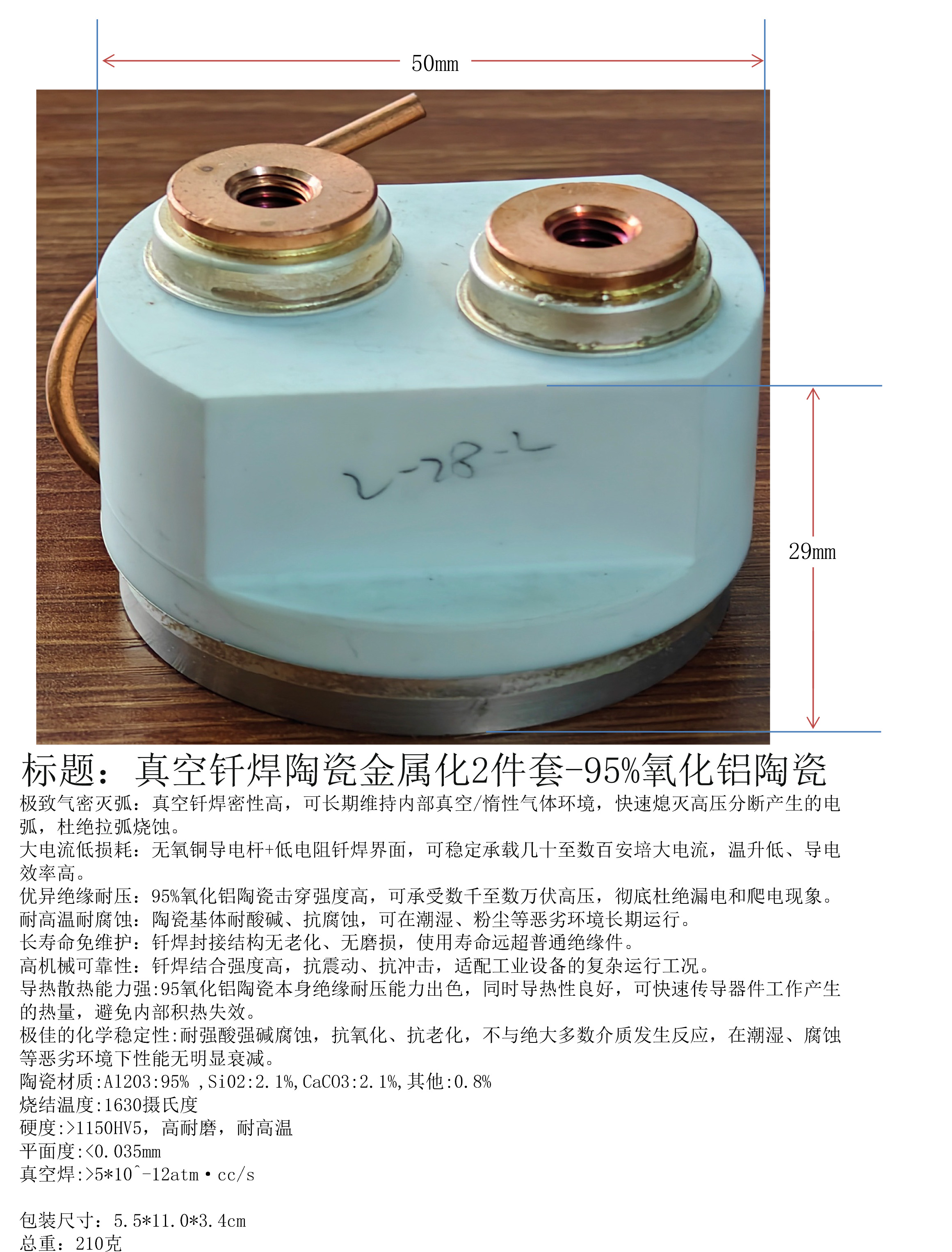 产品名称:真空钎焊陶瓷金属化2件套-95%氧化铝陶瓷