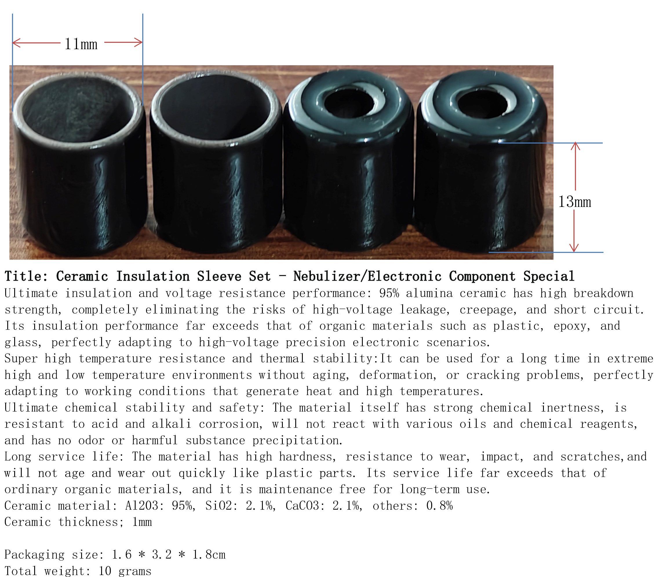 产品名称:陶瓷绝缘套管套装-雾化器/电子元件专用