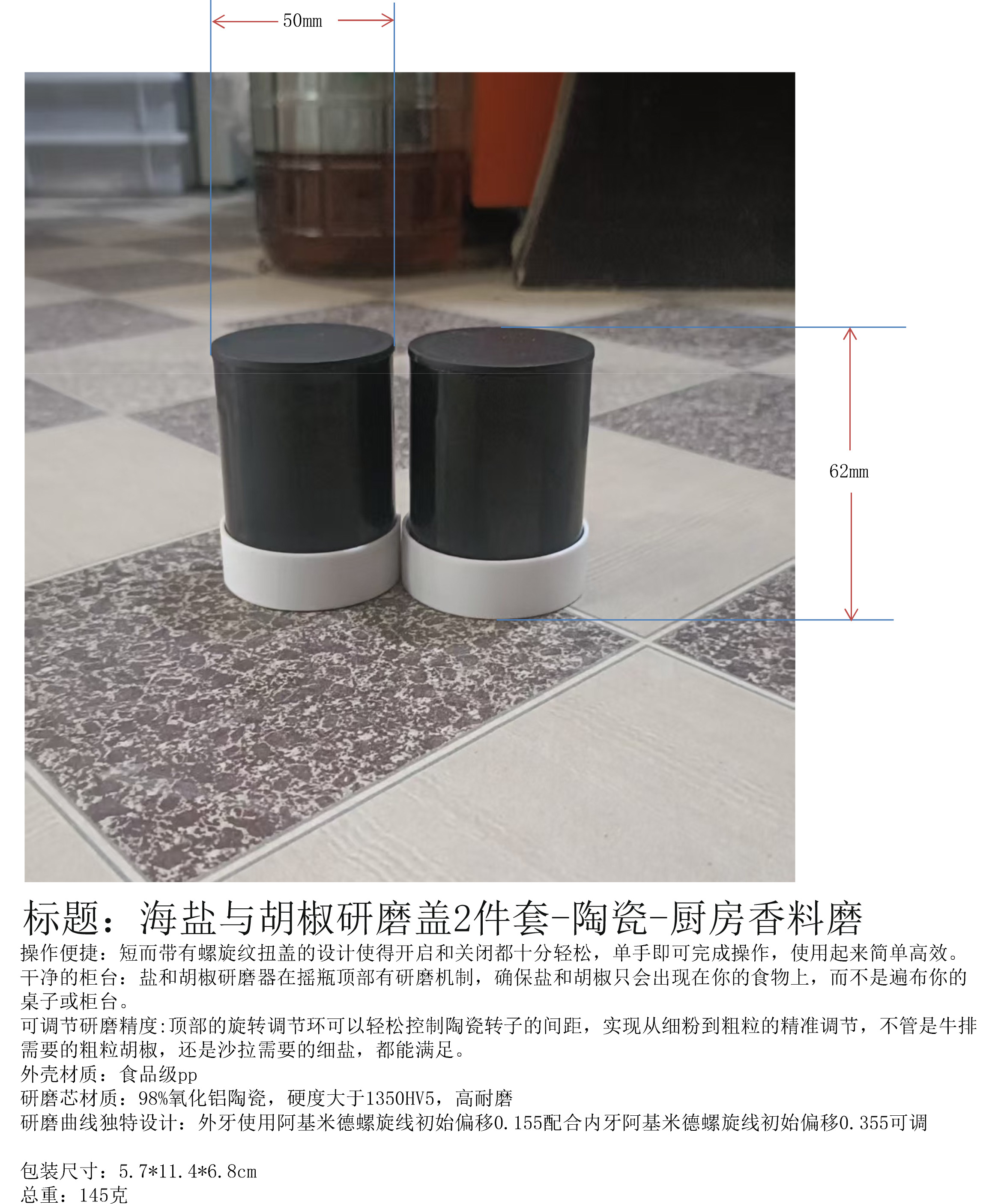 Product Name: 2-piece set of sea salt and pepper grinding cover - Ceramic - Kitchen spice grinder